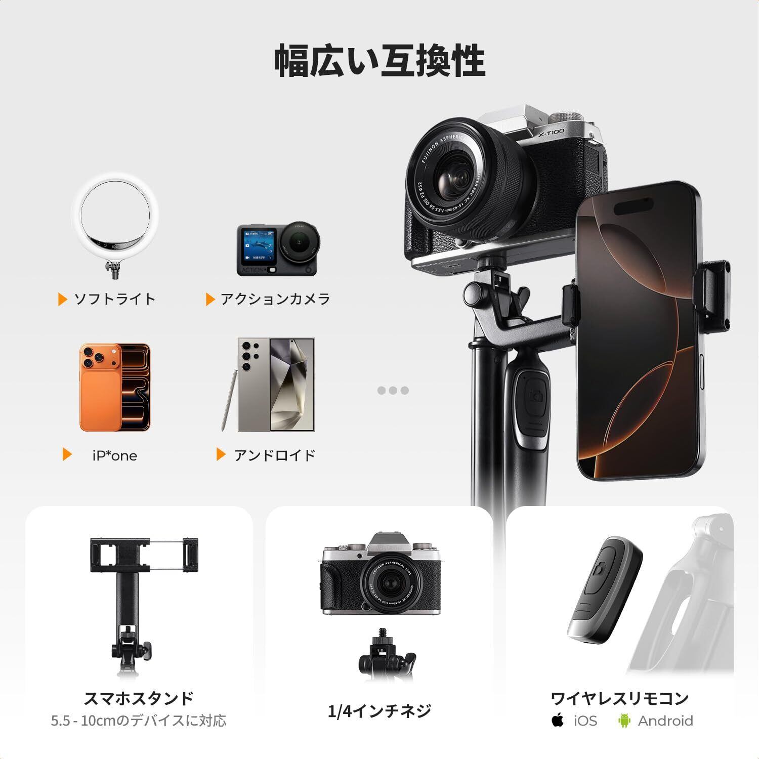 【Bluetoothリモコン付きで、多彩なシーンで活躍】通信距離約10mのシンプルなワンボタン式Bluetoothリモコンが付属し、遠隔での写真撮影・動画録画の操作が可能です。一人旅の自撮り、家族・友人の集合写真、美妝ライブ配信、アウトドアでのアクティビティ記録まで、幅広いシーンで安定した撮影をサポート。コンテンツクリエイターや写真愛好家にぴったりの一本です。