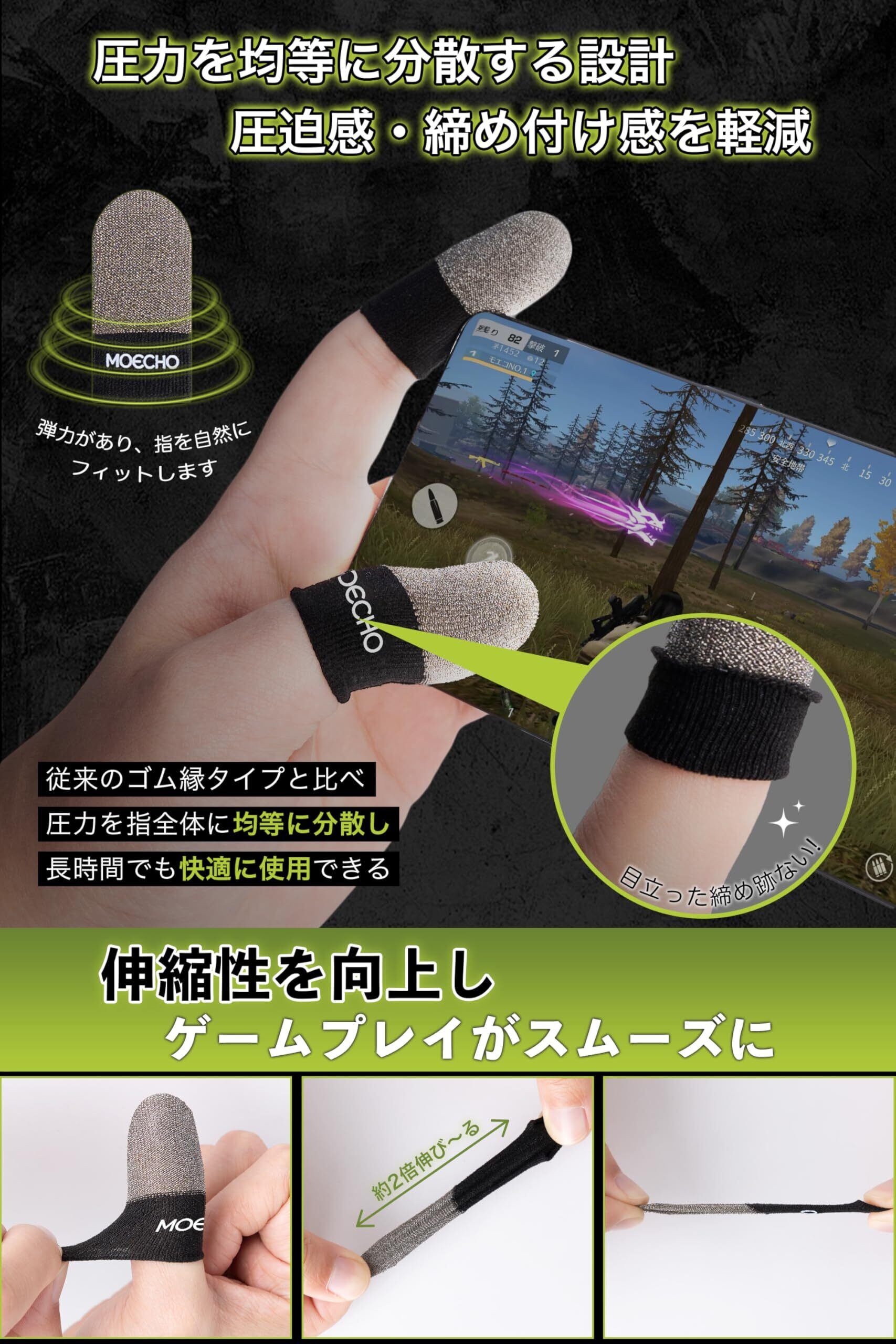 指サック ゲーム 指サックゲーム用 ゲーム用指サック スマホ ゲーム 指サック 指 サック 音ゲー 格ゲー FPS 適用 手汗対策 すべり止め 締め付け感改善 プロセカ 荒野行動 PUBG CoD APEX 対応 指紋 静電気 防止 全指対応 10個入り (ブラック)