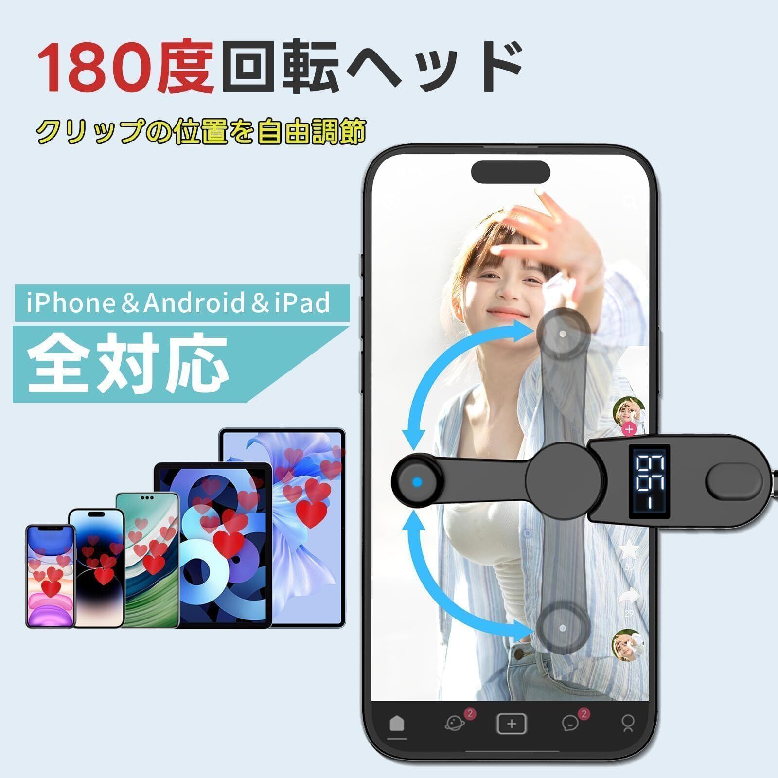 【数量限定】UYTON オートクリッカー 自動タップ機 スマホ 無音連打機 いいね スマホ連打装置 クリップ式 USB給電式 高速 スマッチ 装置 tiktok/ライブ/いいね/ハート/ゲーム周回作業/推し活 iPhone/Android/iPadに対応 (198種類タップ速度)