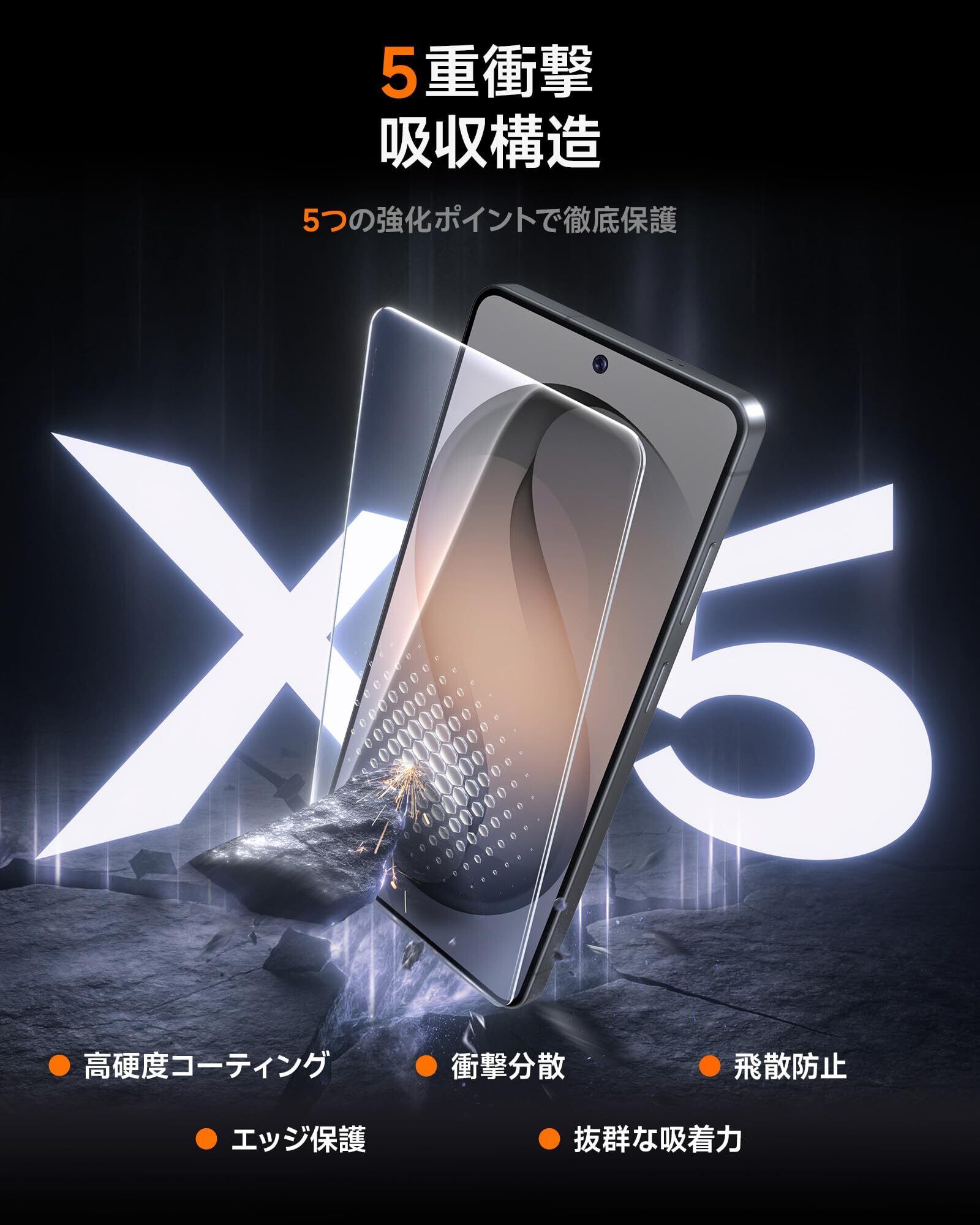 特徴 光沢、ガイド枠付き、自動除塵、貼り付け簡単、強化ガラス、20kg耐衝撃、飛散防止、落下保護、縁なし