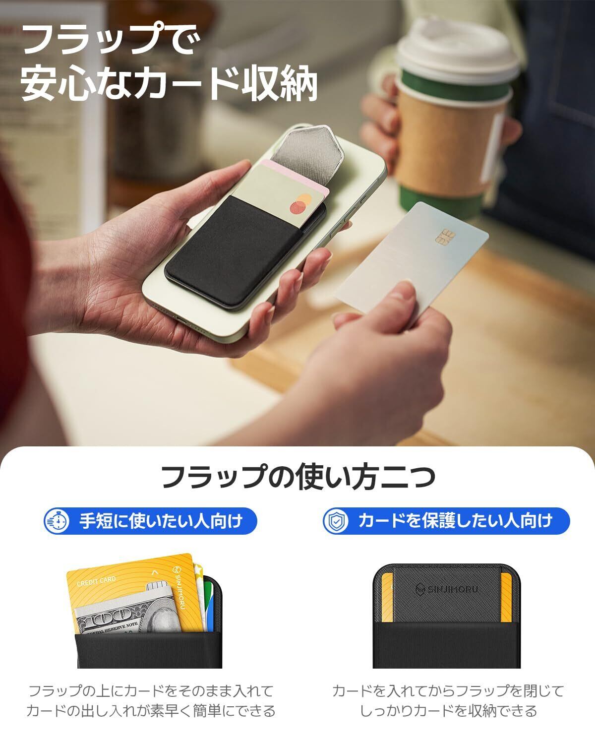 Sinjimoru magsafe カードケース 調節可能なスタンド 強力磁力 3000G マグセーフ カードケース iPhone 17/16/15/14/13/12シリーズ対応 フラップカバーでカード落下防止 M-Flap Stand ブラック