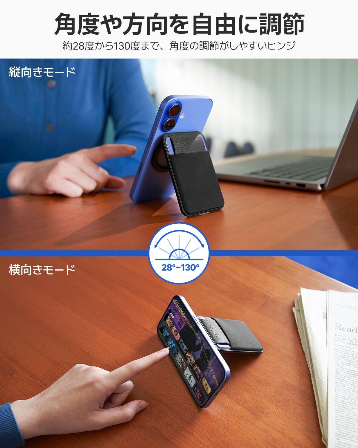 iPhone対応: M-Flap Standは、iPhone 17、16、15、14、13、12モデルに対応しており、マグセーフ対応デバイスおよびケースと互換性があります。マグセーフ対応ケースを使用することで、より良い使用感を得られます。非対応ケースでは使用できません。