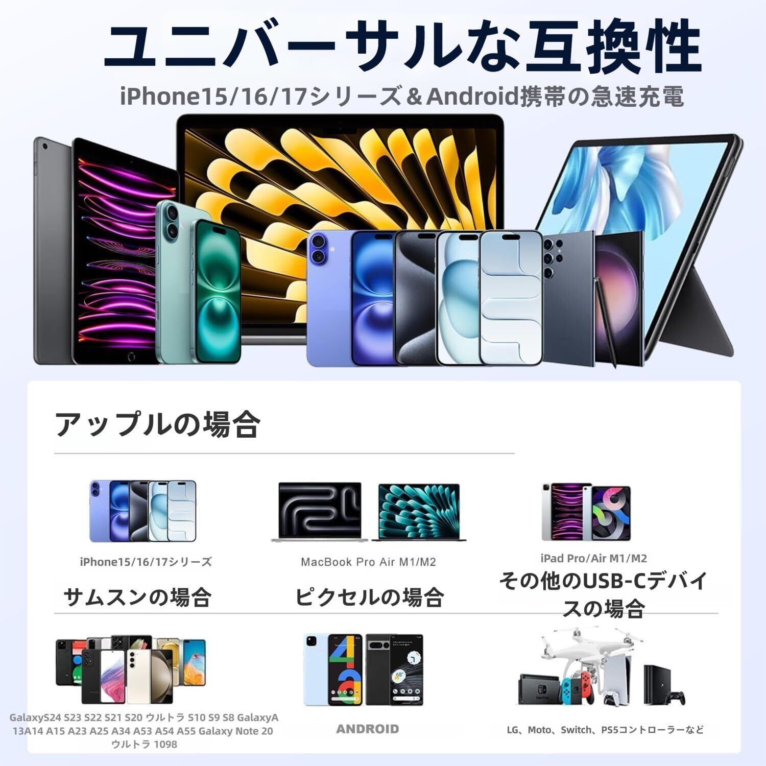 【2022最新】USB Type C 充電 ケーブルPD 150W 超高急速充電 タイプc ケーブル iPhone17/Air/16/16e/15 Macbook/iPad Pro&Air/Galaxy 対応タイプc多機種対応 在宅勤務支援(01white,1m1m)