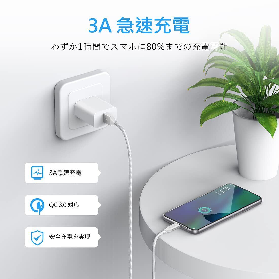 【数量限定】USB Type C ケーブル 3m 白 タイプ C ケーブル 長い 急速充電 USB C コード 高速データ転送 高耐久ナイロン Galaxy S10 S9 A20 A21、Xperia、Pixel、Xiaomi、Switch、Fireタブレット, その他Android Type-C機器対応