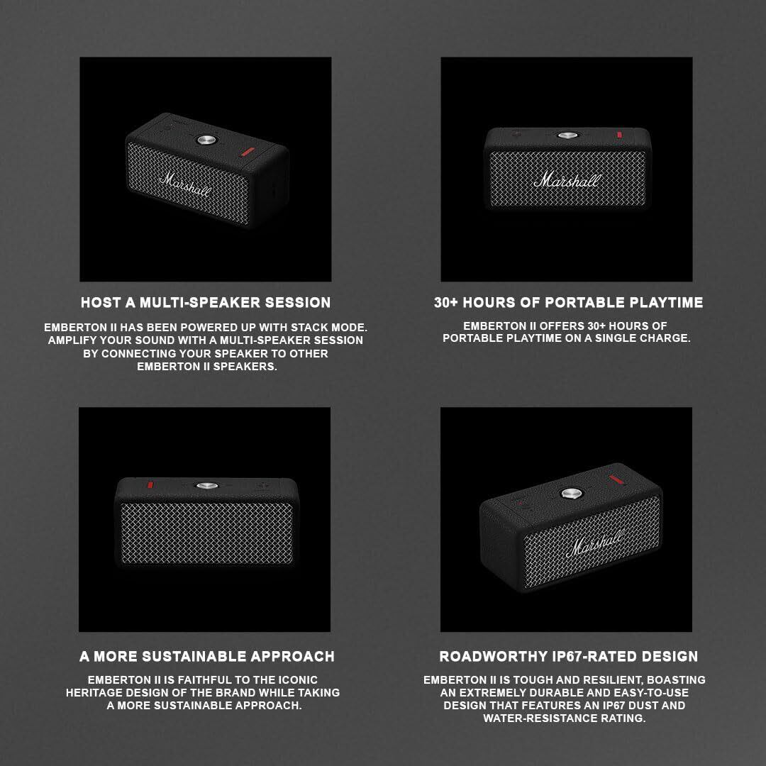 Marshall ワイヤレスポータブル防水スピーカー EmbertonⅡ ブラック&スチール 連続再生30時間/IP67防水仕様/小型/急速充電