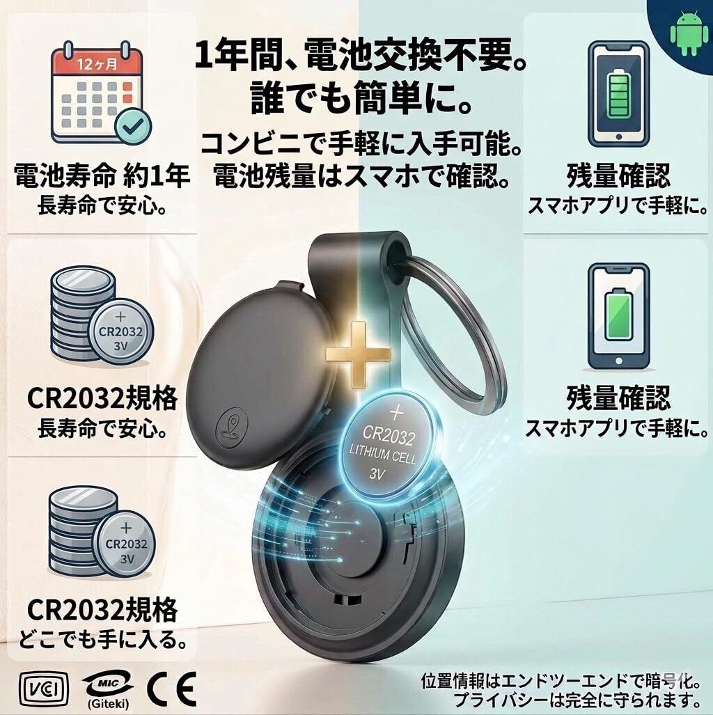 【長寿命バッテリーで手間いらずの長期使用】CR2032 ボタン電池を採用し、交換が必要な場合も簡単に対応可能。最長約 6 年間使用できる長寿命設計により、頻繁な電池交換の手間を大幅に削減し、常に安定した追跡機能を利用できます。予備電池も付属しているため、長期間安心して使い続けられます。