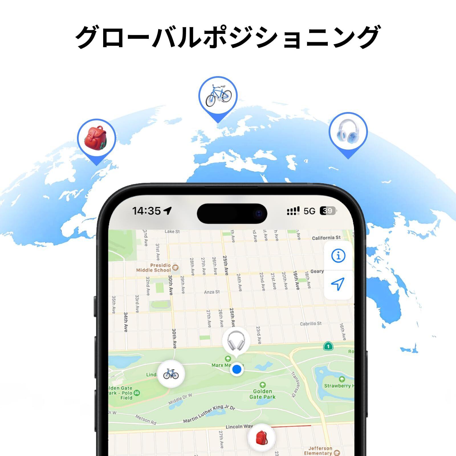 【世界中での高精度位置特定】:Appleの「探す」ネットワークを利用すれば、世界中のどこからでもAppleデバイス(iPhone/iPad/Mac)が近くにある限り、距離制限なくアイテムの位置を特定できます。