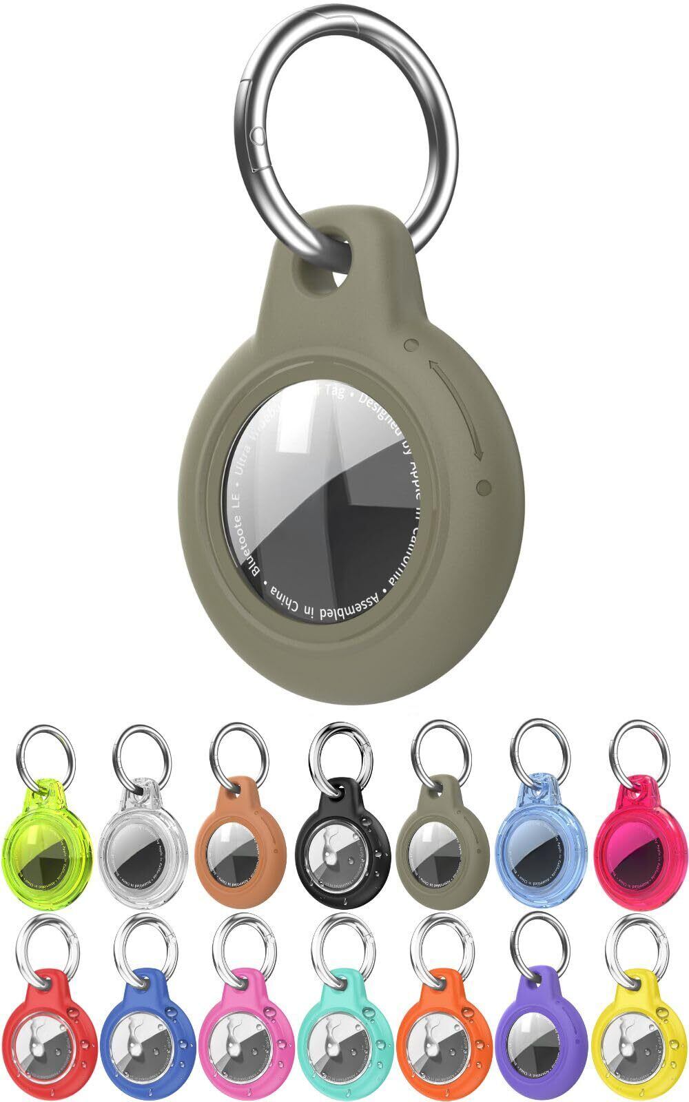 サスガジェット (どこにつけても安心) airtag ケース 防水 エアタグ キーホルダー 鍵 紛失防止 カバー カラビナ 子供 犬 首輪 (アーミーグリーン)