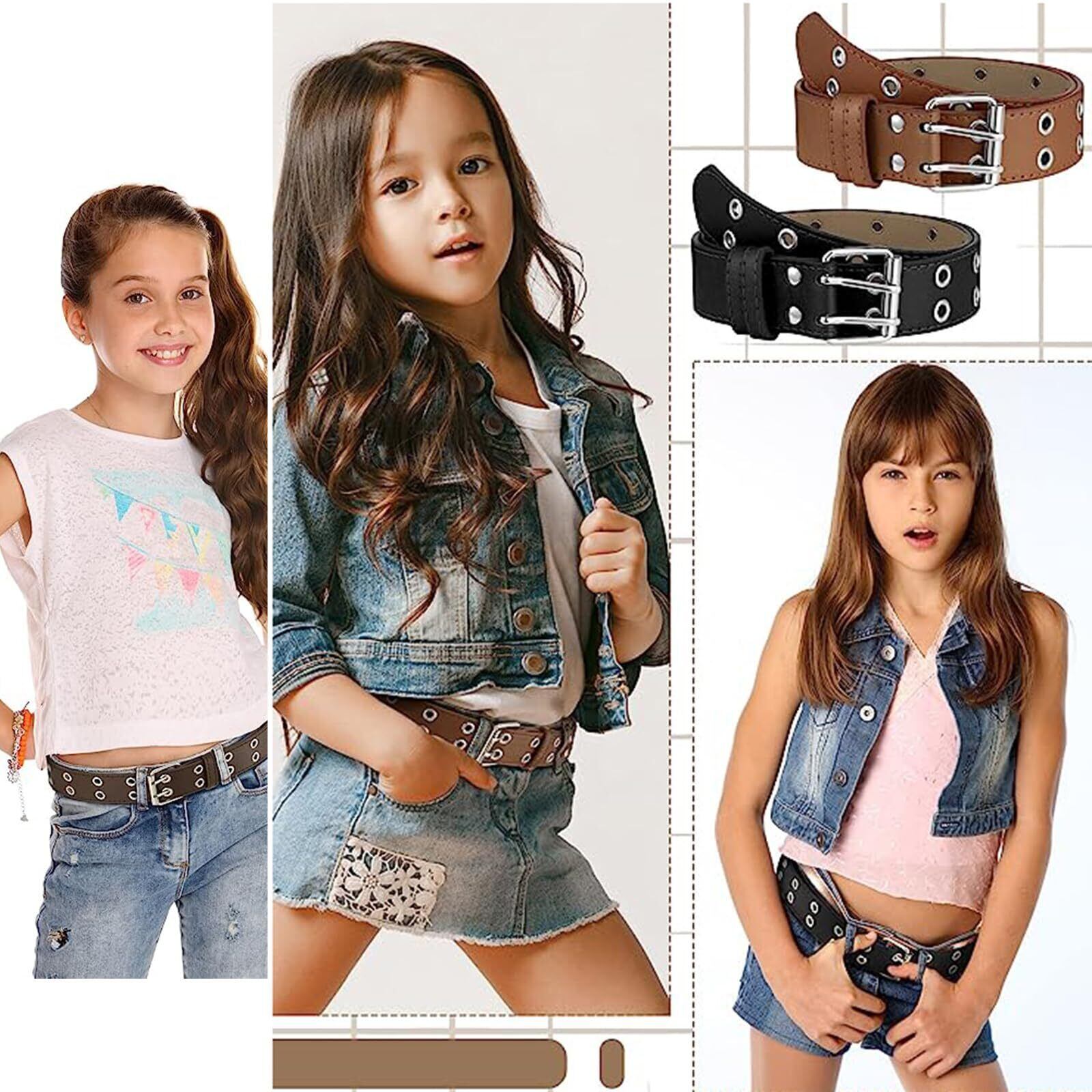 キッズ ベルト ダブルピン PUレザー ガチャベルト おしゃれ 穴あき チェーン付き 女の子 男の子 小学生 中高学年