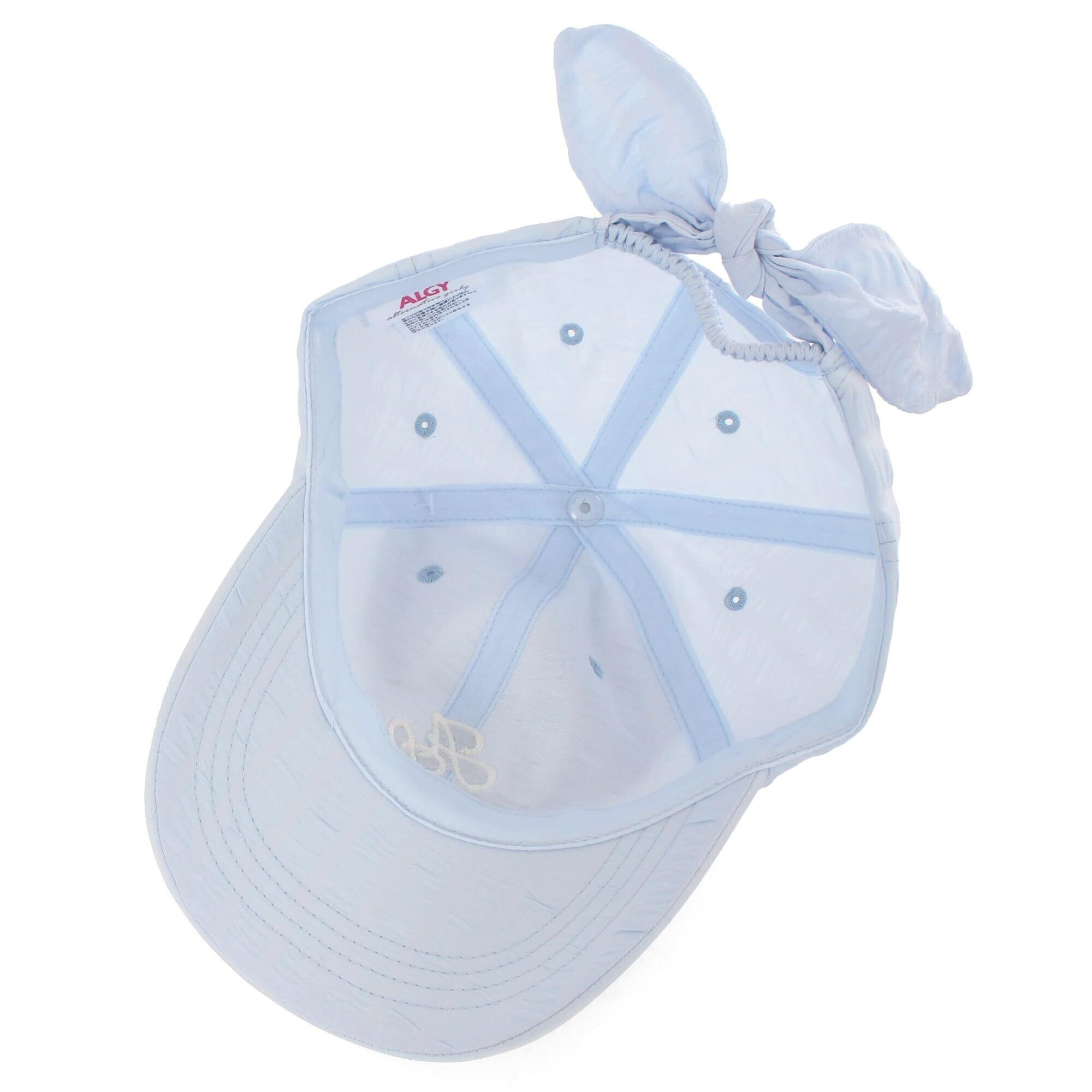 ALGYのキッズリボンキャップです。飽きのこないシンプルなデザインなのでシーズンを通して長くご愛用頂けます。後ろ部分がゴムになっているのでフリーサイズでご使用頂けます。
