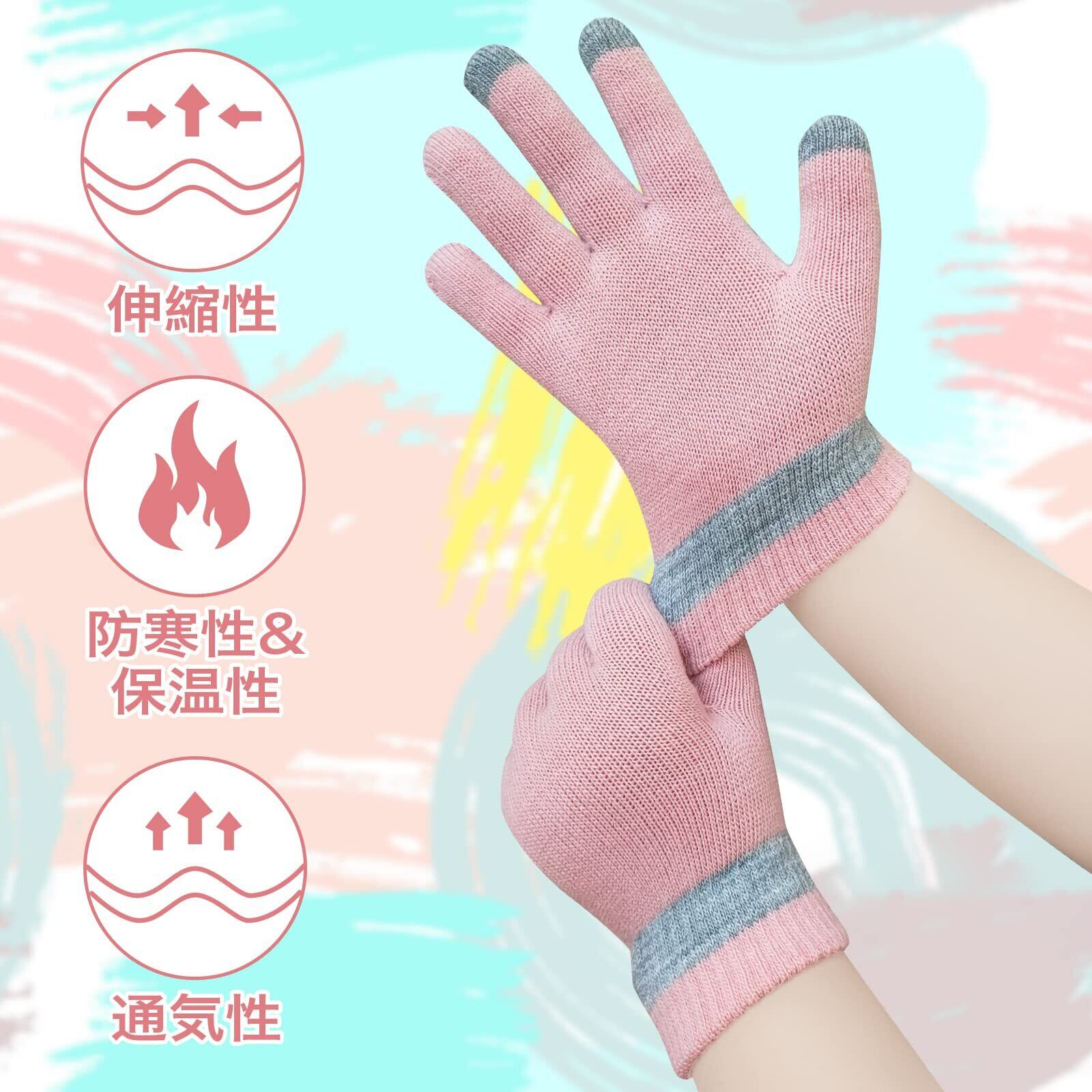 3色組 ニット手袋 子供 男の子 女の子 キッズのびのび手袋 スマホ対応 五本指 厚手 通園 通学 雪遊び アウトドア 秋冬 防寒 防風 あったかい