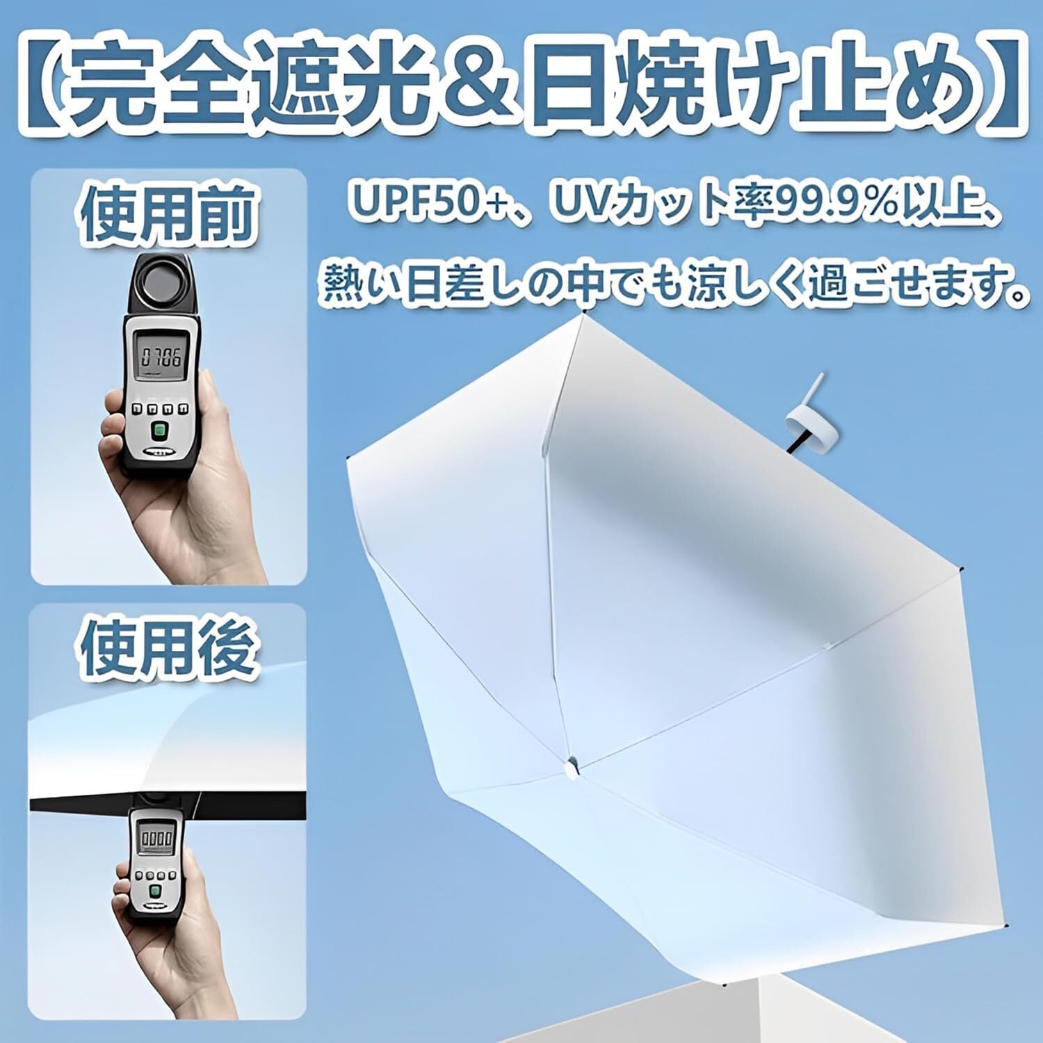 【日傘兼用雨傘 - 高密度布&テフロン加工で優れた防水機能】 この折りたたみ日傘は、高密度布とテフロン加工を使用しており、ナノテクノロジー防水加工が施されています。通常の折りたたみ傘よりも優れた防水性能を持ち、雨滴が傘布の表面で自動的に滑り落ちます。さらに、耐風撥水機能を備えており、強風や雨にも安心してお使いいただけます。