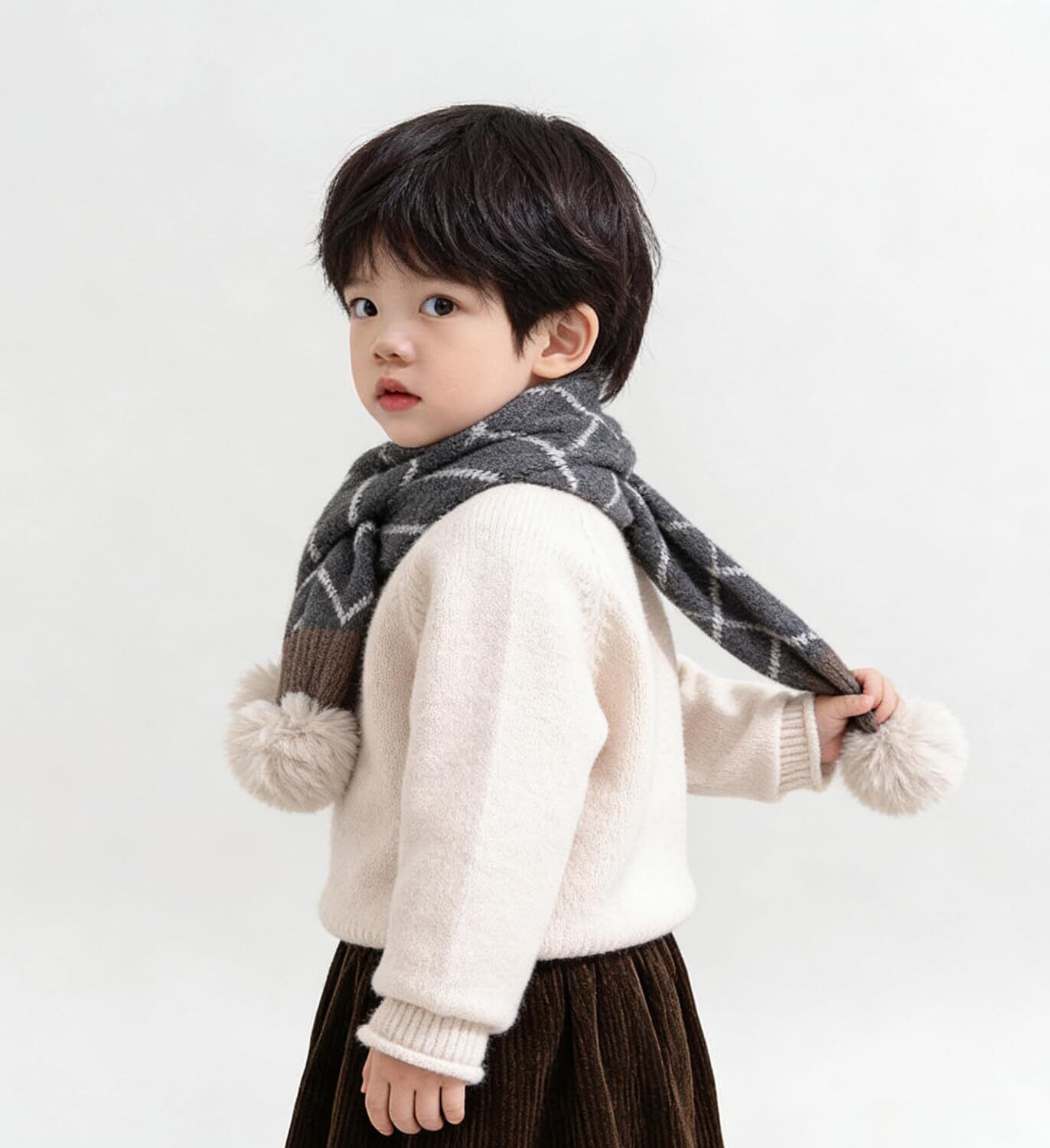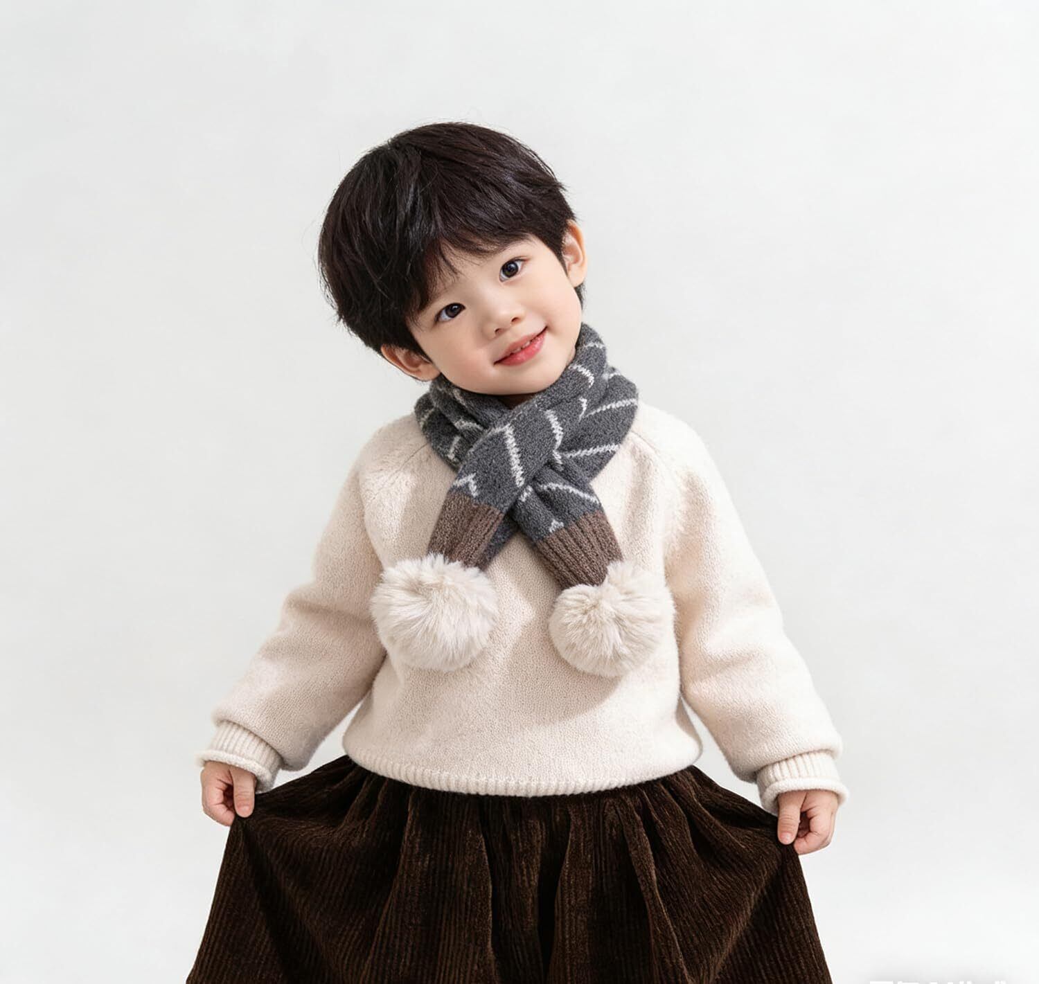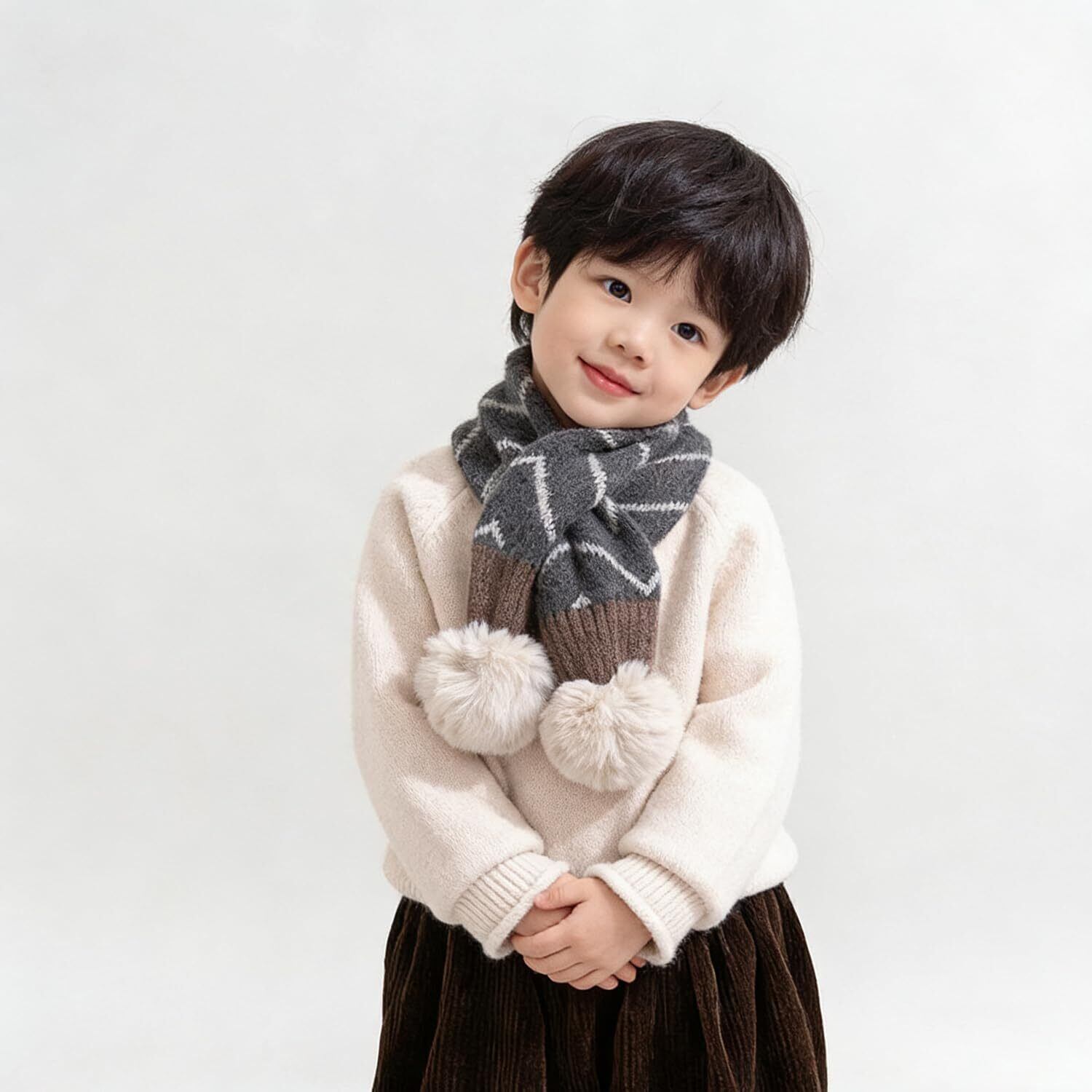 キッズマフラー女の子男の子防寒マフラーかわいいプロフィール風柔らかな秋冬ニットマフラー