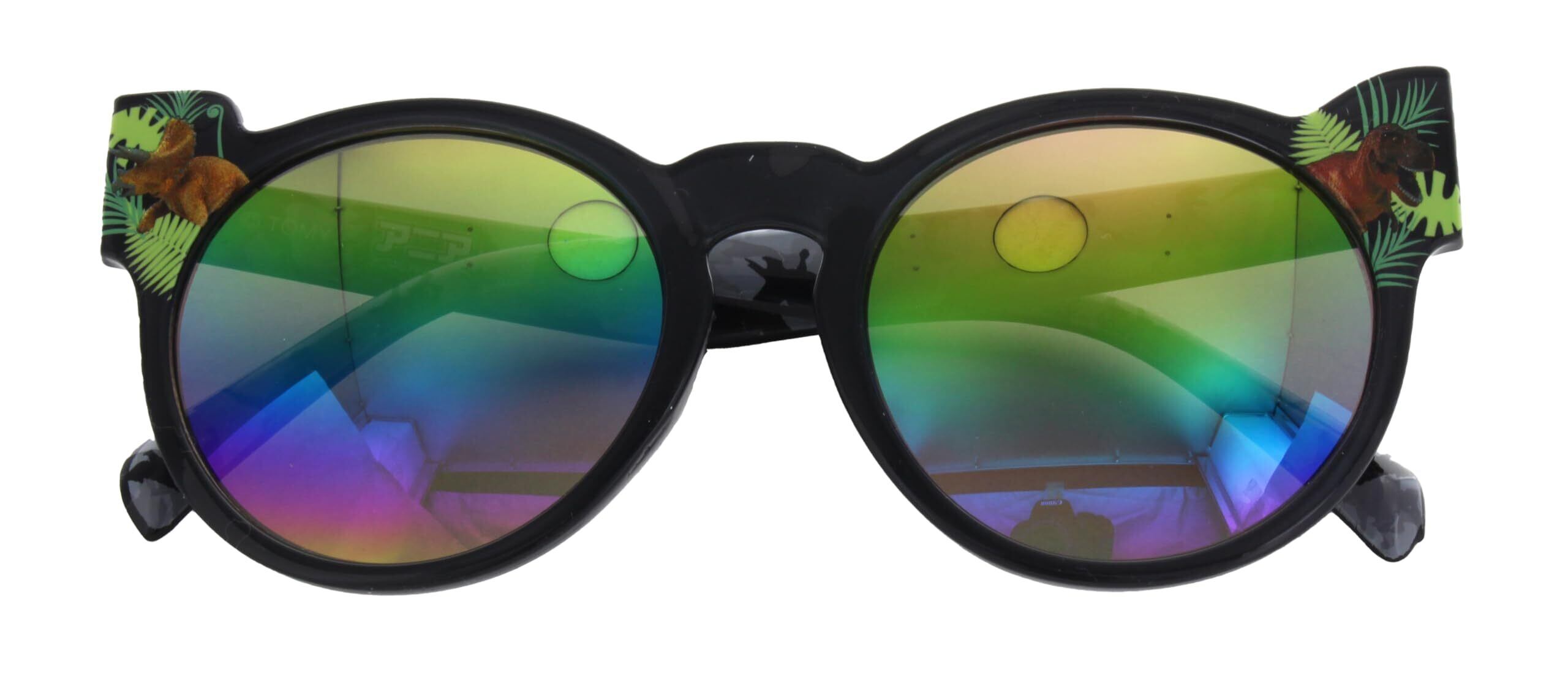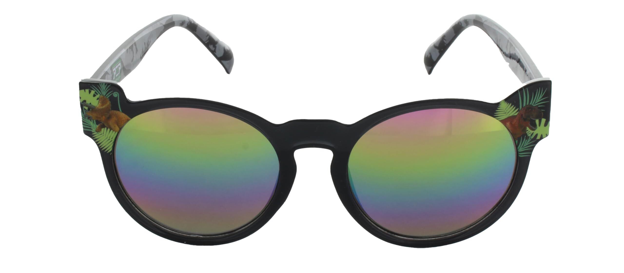 こどもたちに人気の恐竜をデザインしたアウトドア感たっぷりのサングラスです。左右に人気恐竜のティラノサウルスとトリケラトプスをプリントしています。