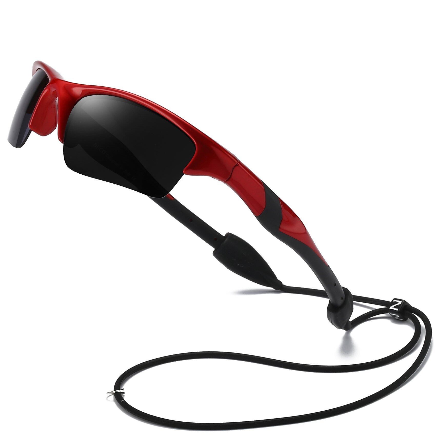キッズサングラス 子供サングラス スポーツ 偏光サングラス 超軽量フレーム UV紫外線カット 野球 ランニング サイクリング用 5-12歳 K014 (レッド)