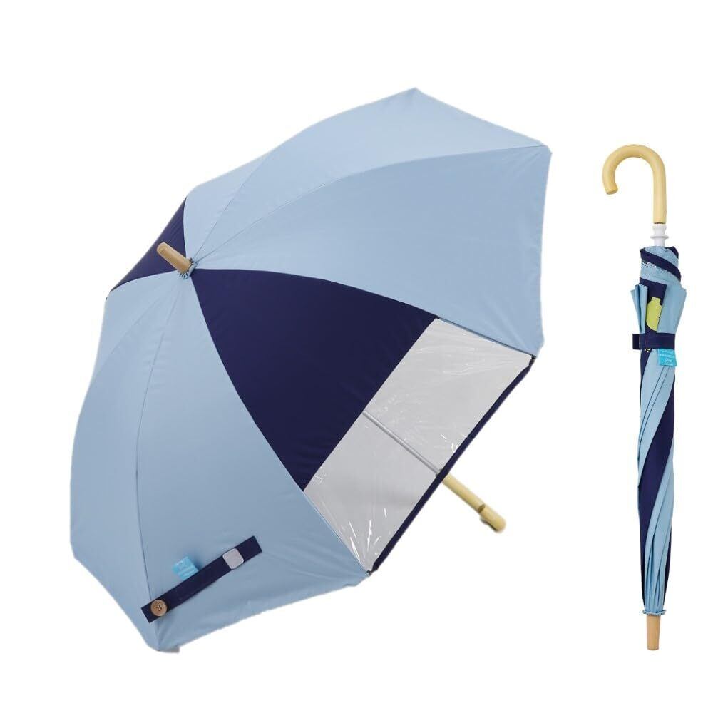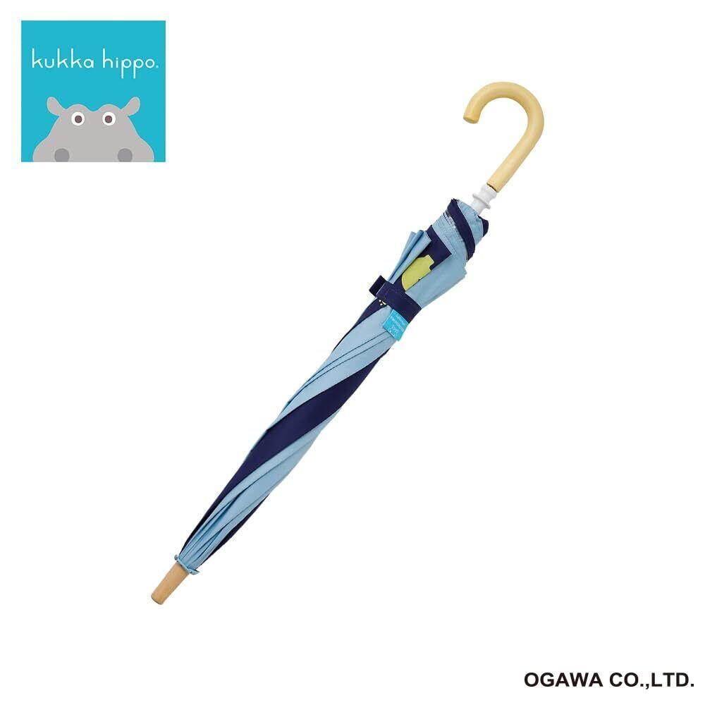小川(Ogawa) キッズ長傘 子供日傘 先端が丸いT型露先 手開き式 50cm kukkahippo クッカヒッポ サックス×ネイビー UVカット率&遮光率99.9%以上 遮熱加工 安全手開き ネームバンド付 透明窓付き カバさんの反射プリント付 晴雨兼用 チャイルドパラソル チャイパラ 60225
