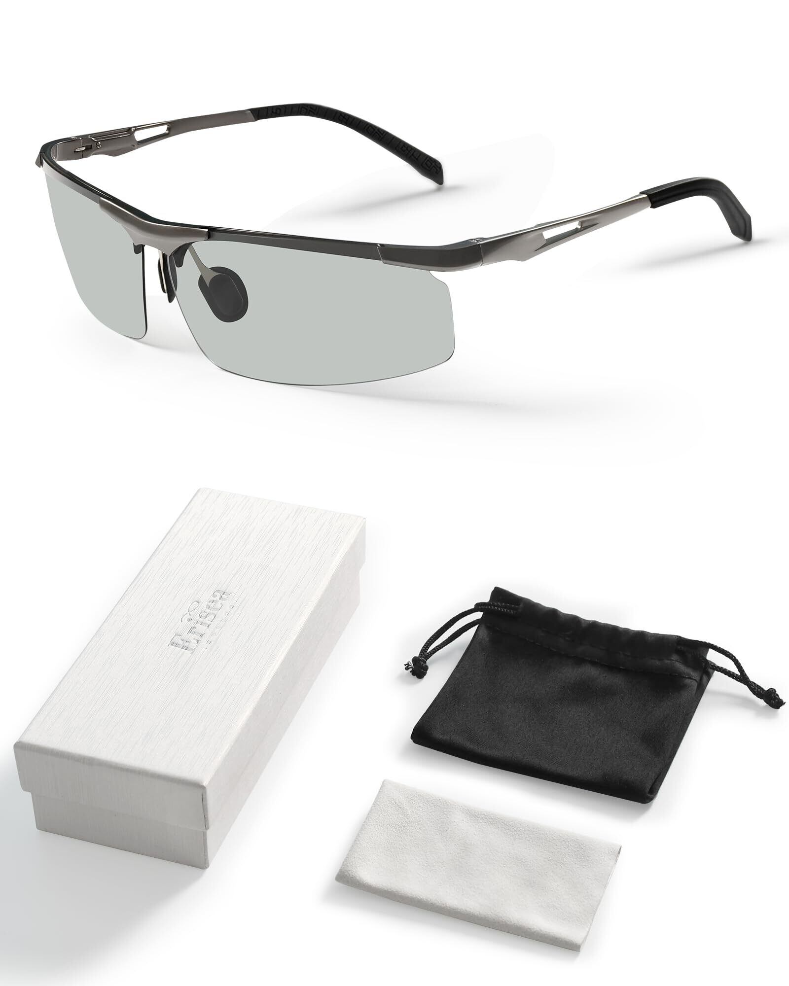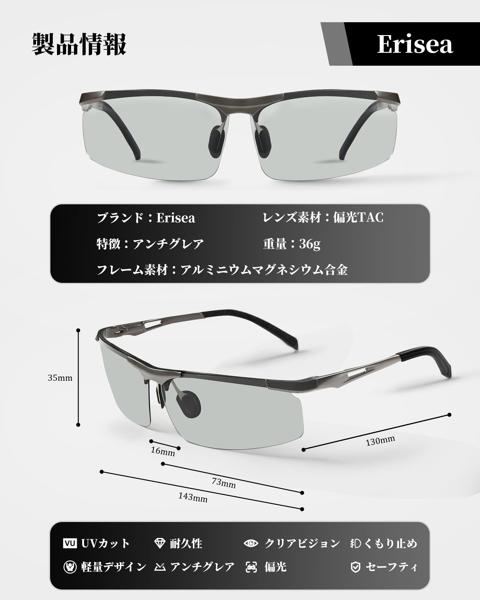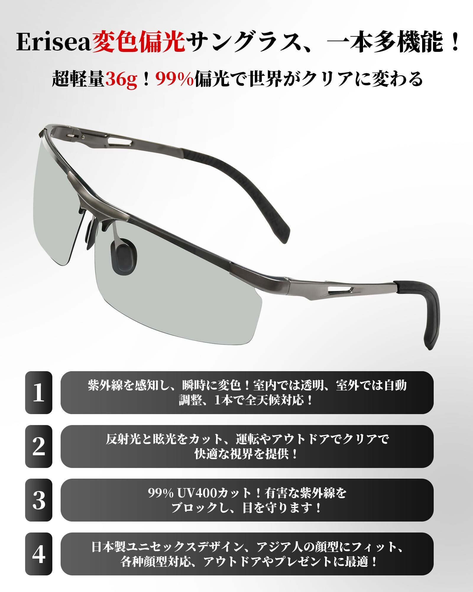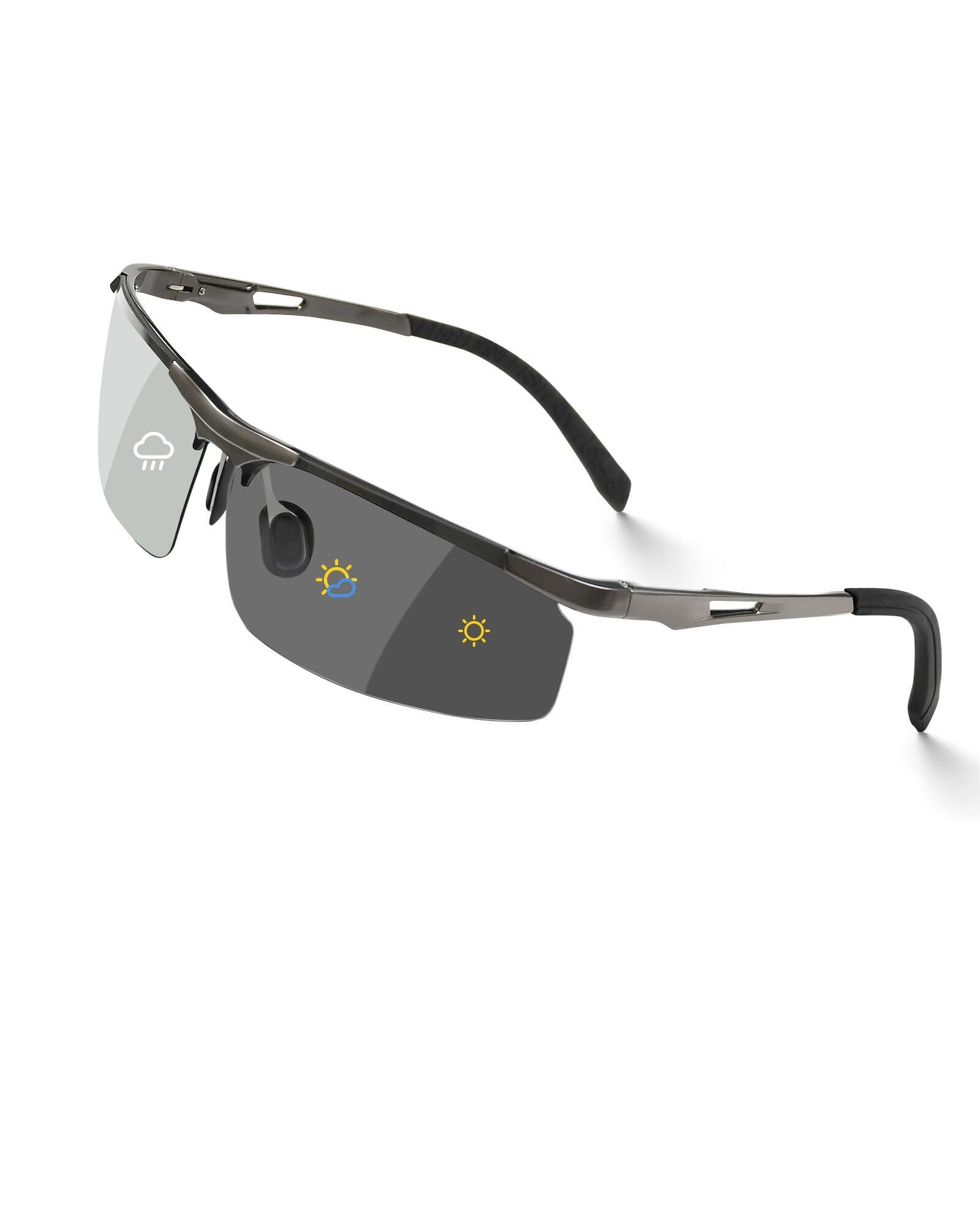 【スマートな変色機能搭載の偏光サングラス】:最先端の調光技術を採用したメンズサングラス。レンズが紫外線の強度に応じて自動的に色の濃さを調整し、晴れた日も曇りの日も、運転やスポーツ時でも快適な視界を提供します。偏光効果により反射光をカットし、クリアビジョンを実現。ゴルフや野球、ロードバイクなど各种アウトドアシーンに最適なサングラスです。