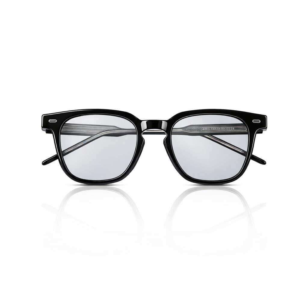高級素材と仕様: TR90、アセテート素材を使用。サイズは幅14.8cm、奥行15.1cm、高さ4.8cm。重量はわずか28gで、カラーはブラックをご用意しています。