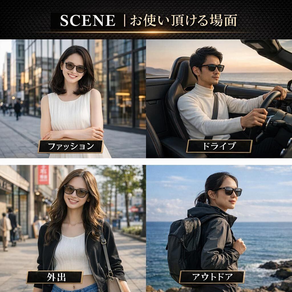 【日本人向けウェリントン型】デザイン性,ファッションの高いウェリントン型フレームで カジュアルなコーディネートにも合わせやすく、ファッションアイテムとしてもお使いいただるモデルです。性別問わずユニセックスで使用可能なモデルです。また、顔型を選ばずどんな人でもかけやすいデザインなので、サングラスビギナーでも挑戦しやすいです。レトロな印象に仕上げてくれて、おしゃれ度もアップ。