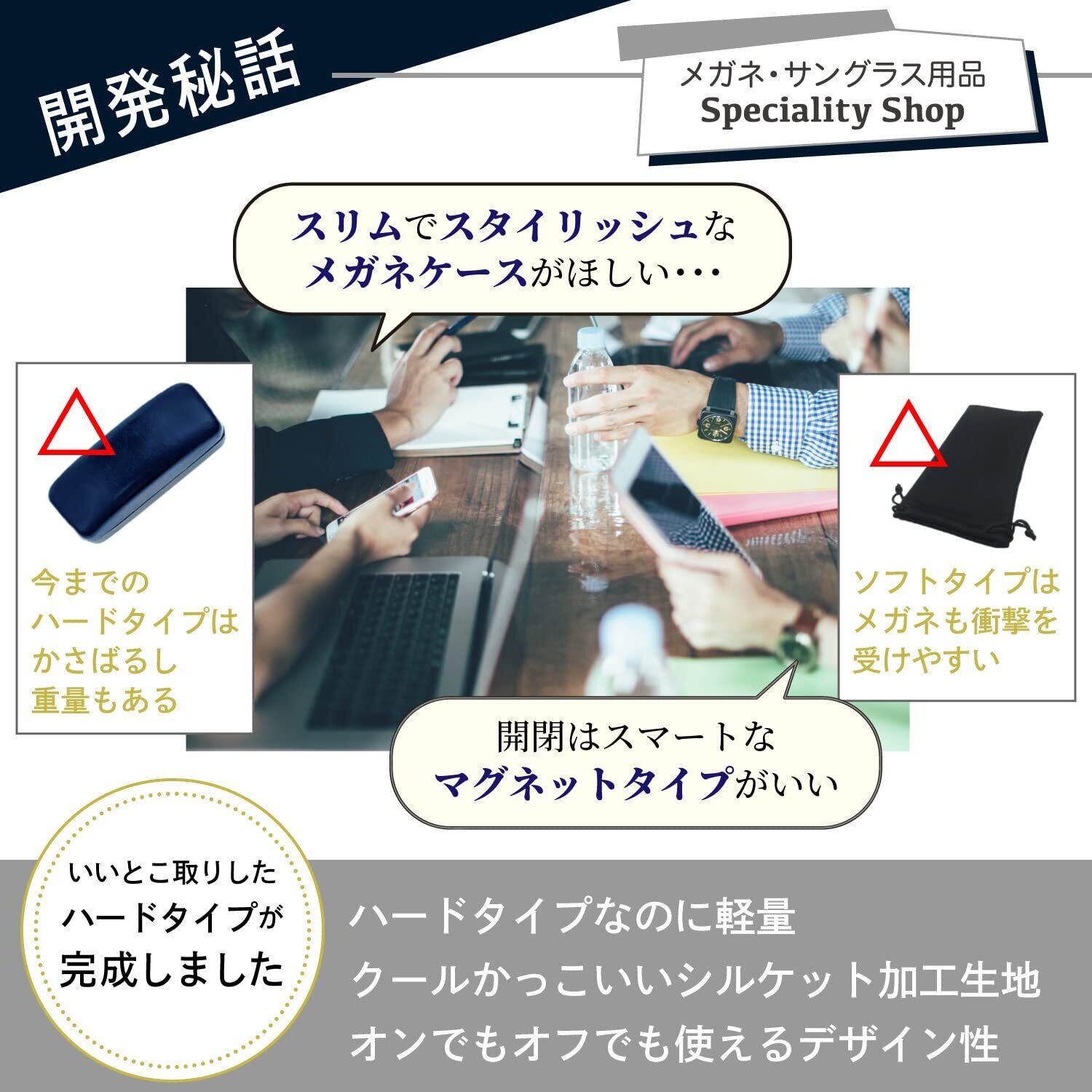 ※クーポン発行中は使用をお忘れなく!!【ベーシックなデザインが大人のオシャレ感を演出する】 シンプルで高級感のあふれるデザインが人気のメガネケース(サングラスケース)です。大切なメガネをしまうものだからこそ、おしゃれで上質な逸品を使いませんか?美しく無駄のない見た目に加えて、使い勝手も抜群。開口部はマグネットでやさしくパチンと閉じるので、カバンの中でメガネが露出する…ということもありません。