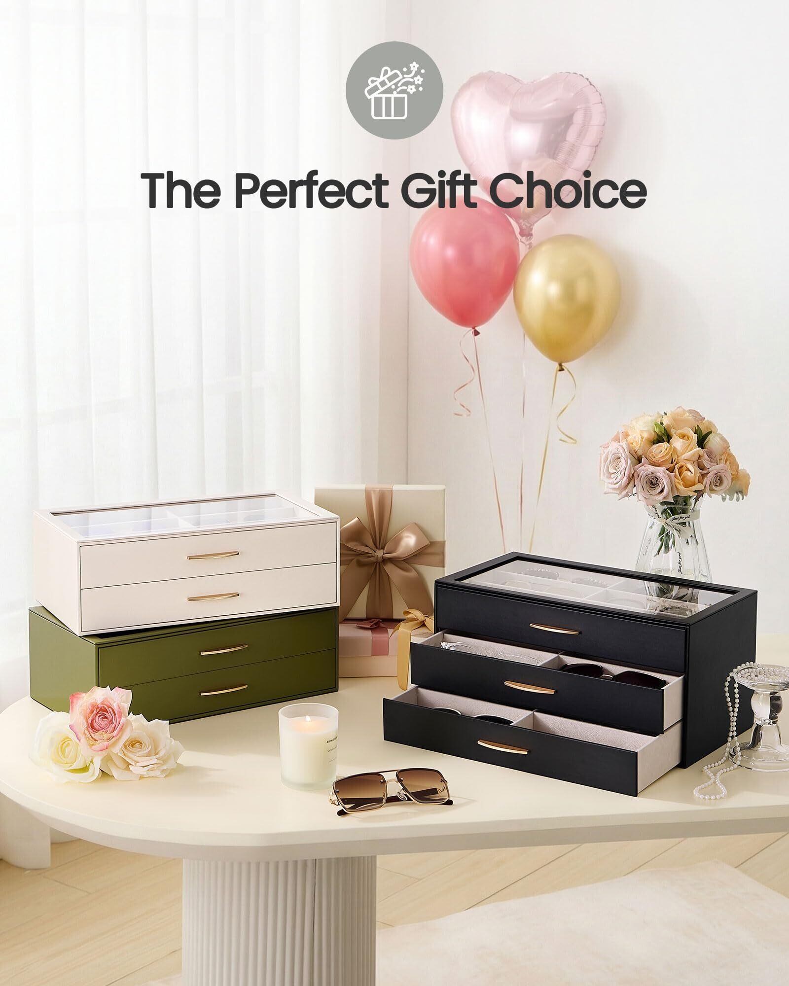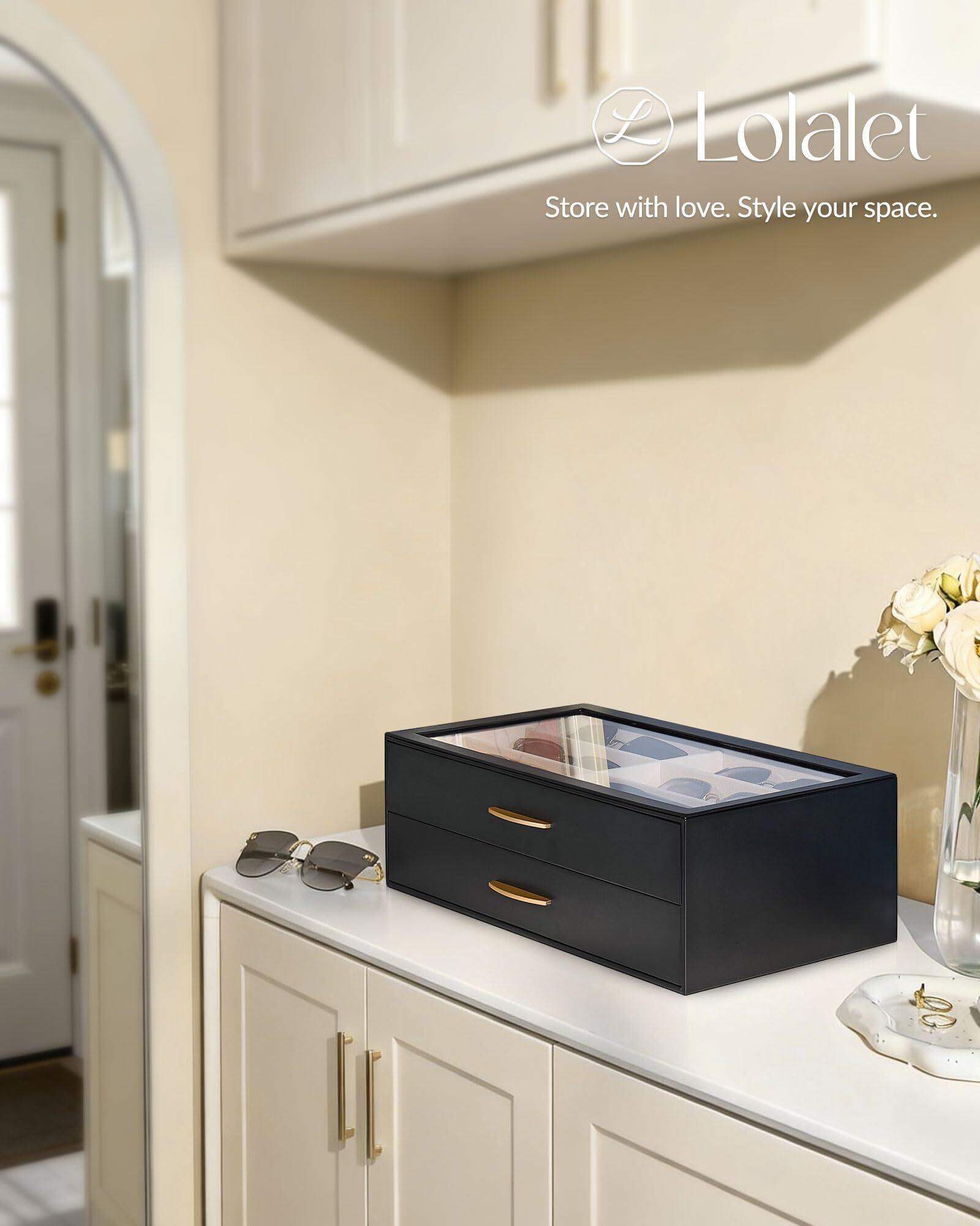 Lolalet サングラス収納ケース 大容量 メガネ アクセサリー収納 ボックス 透明 クリア天板 ディスプレイ 引き出し収納