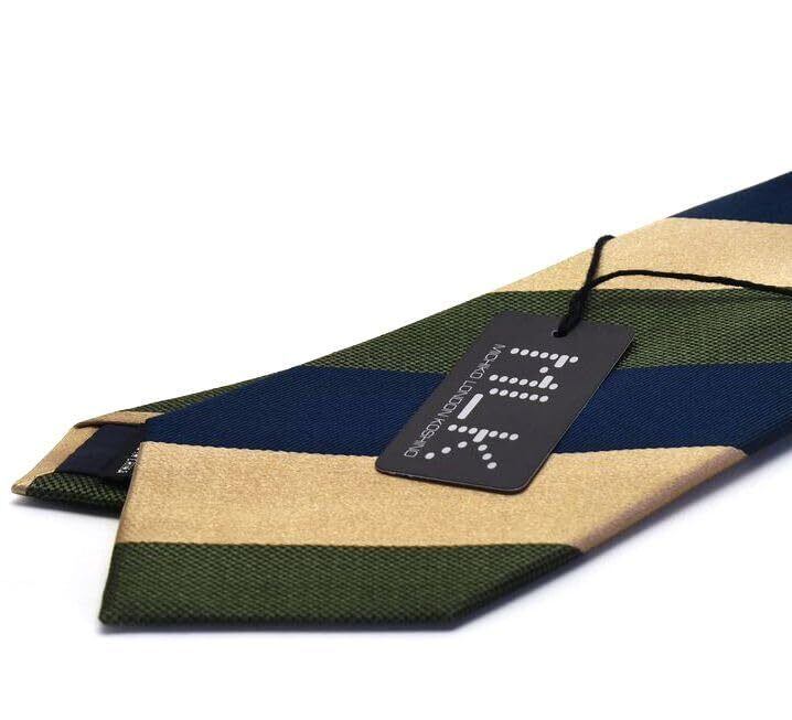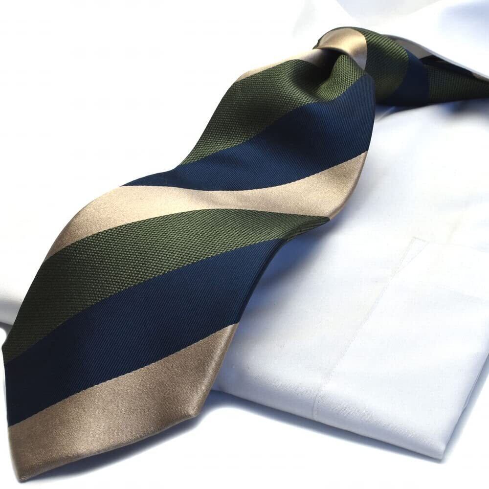 グリーン、ダークネイビー、ゴールドベージュのストライプ