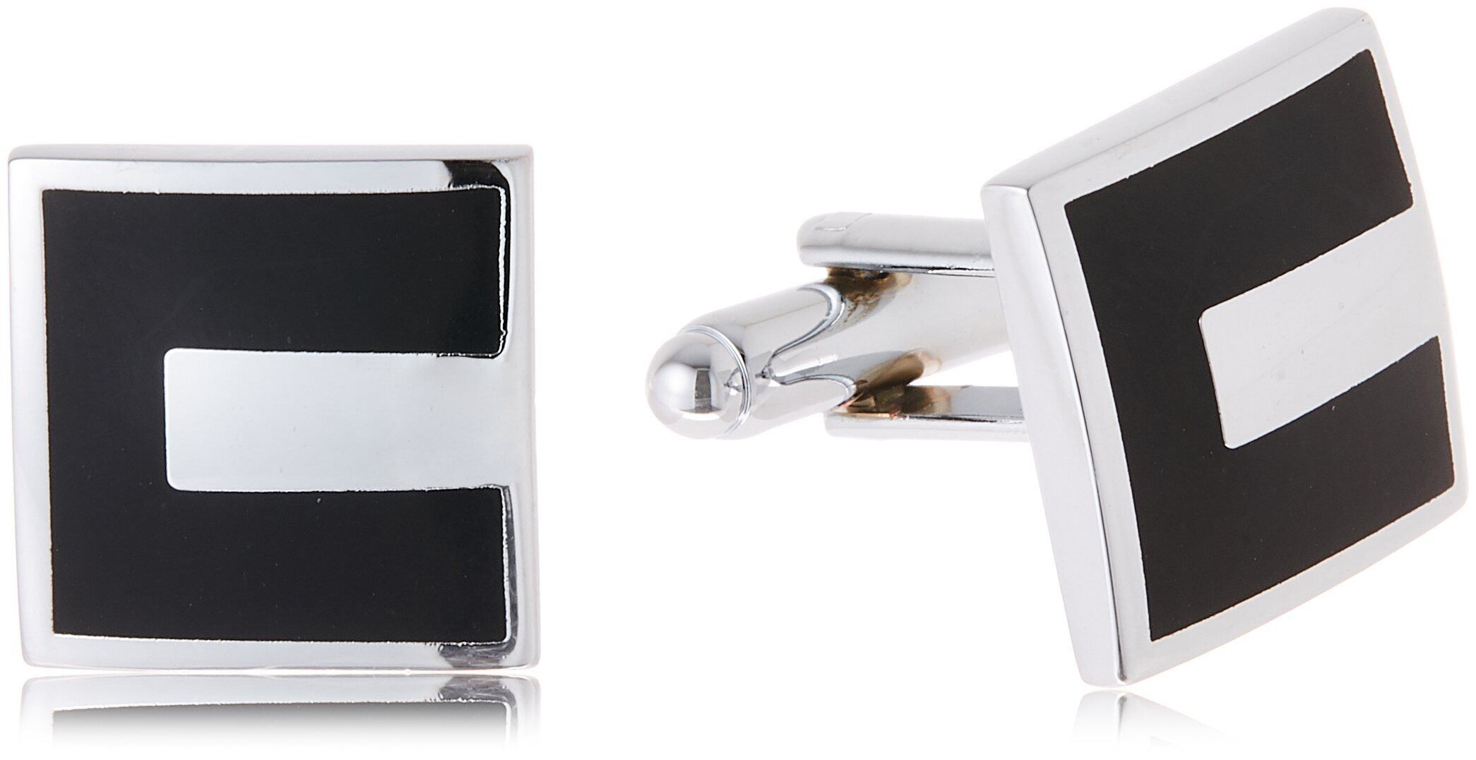 カフス メンズ (ブラック & シルバー デザイン) 結婚式 ビジネス プレゼントに カフスボタン HWCF1