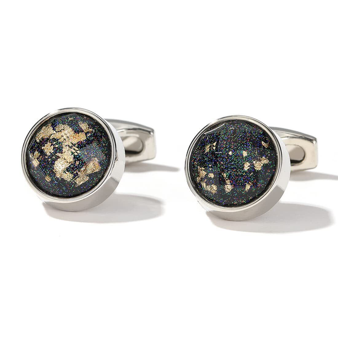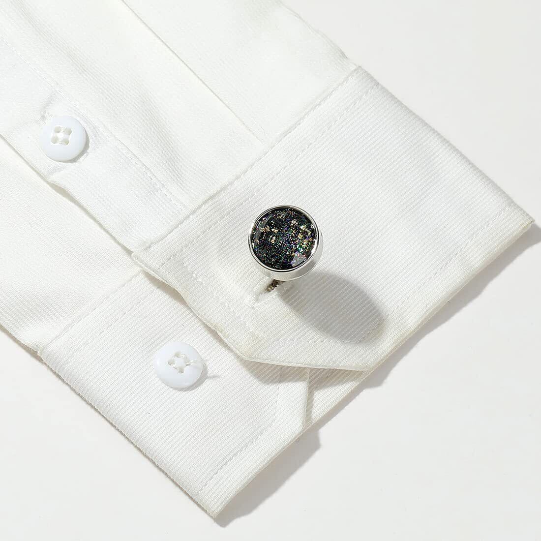 【新着商品】Rockyu カフス メンズ ブランド シルバー 円形 彩色 ラウンドカフス ビジネス スーツ 紳士 ビジネス 父の日プレゼント ステンレス ヨーロッパ風 カフリンクス アクセサリー