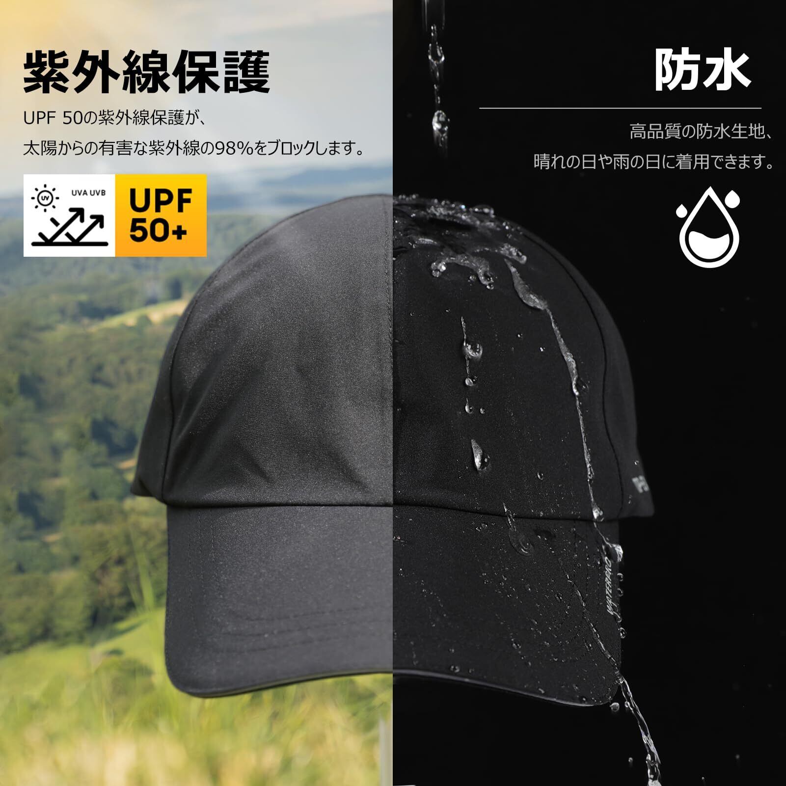 【防水&UPF 50+】高品質のポリエステル技術生地を使用しており、水分子の侵入を効果的に防ぎ、アウトドアスポーツを安心して楽しむことができます。新しいラミネート加工が内部に施されており、すべての針穴をブロックし、数時間にわたって水が浸入するのを防ぎます。雨用の帽子としてだけでなく、日差し対策としても使用でき、UPF50+で99%以上の紫外線を効果的に遮断し、目や顔を守ります。