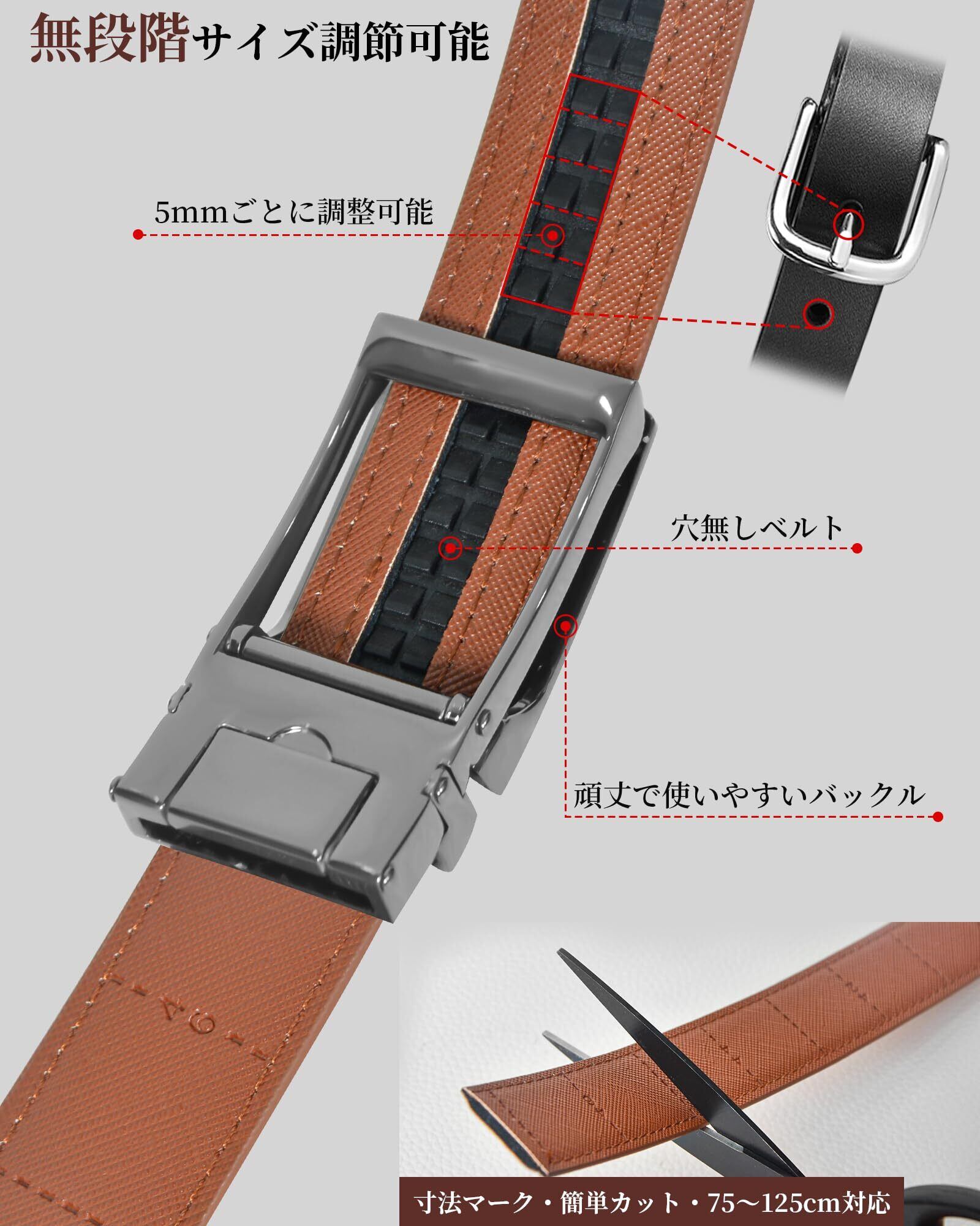 【2022最新】ベルト メンズ オートロック式 本革 穴なし 無段階調整 サイズ調整可能 紳士ベルト カジュアル ビジネス ファッション 使いやすい バイカラー 箱付き