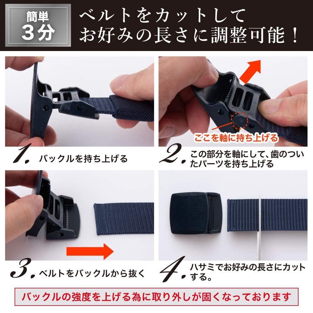 ナイロンベルト メンズ 軽量 非金属 作業用 登山用 サバゲー ワンタッチ装着 長さ調節可能