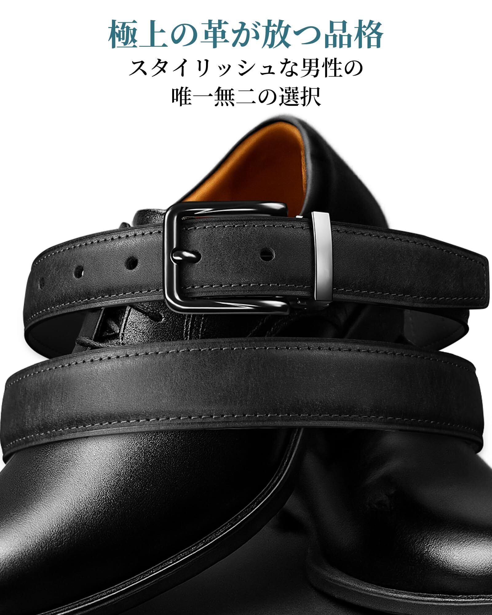 【ビジネス&カジュアル対応】スーツに映える上品さから気軽な装いまで、あらゆるシーンで品格を演出。一本でビジネスからカジュアルスタイルまで幅広く寄り添う、成熟したbelt for men。