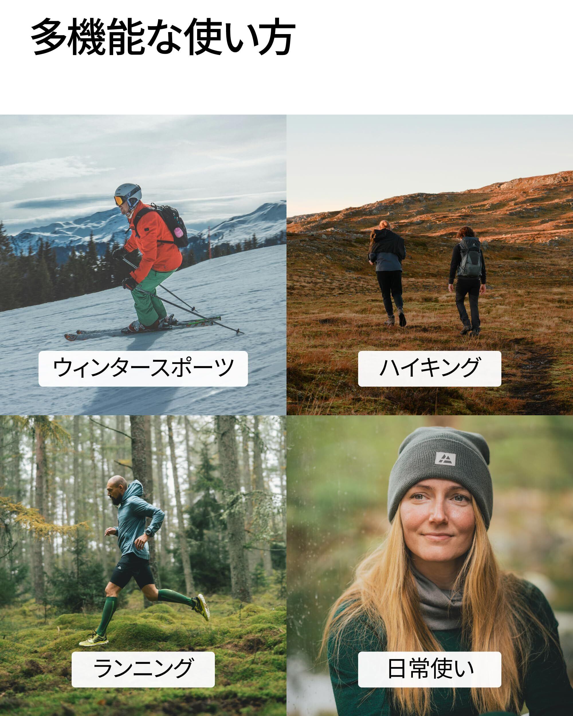 アウトドアや毎日使いに最適:抗菌と防臭機能のあるメリノウールから作られたダブルレイヤーのネックウォーマーです。どんな天候に対しても頭から首まで防寒、防風します。運動、ハイキング、ウィンタースポーツを含むあらゆるアウトドアスポーツに最適です。多目的に利用できるネックゲイターは、鼻を覆うフェイスウォーマー、サークルスカーフやヘッドバンドとして着用できます。この保温アクセサリーに合うニット帽を見つかるには、ブランドストアをご覧になってください。