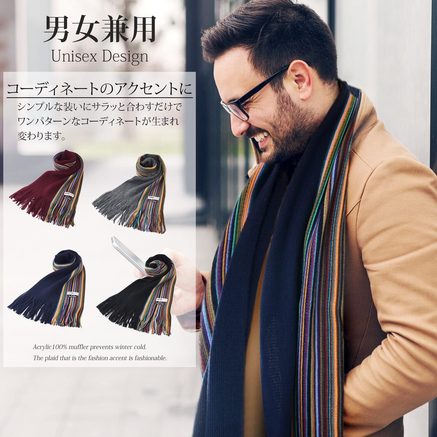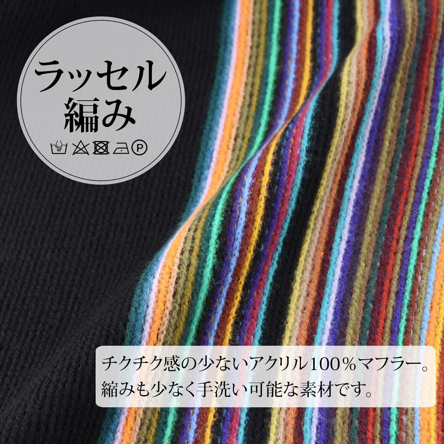【数量限定】ミチコロンドン ブランドマフラー イタリア製 メンズ 男女兼用 ラッセル編 マルチストライプ 防寒 プレゼント