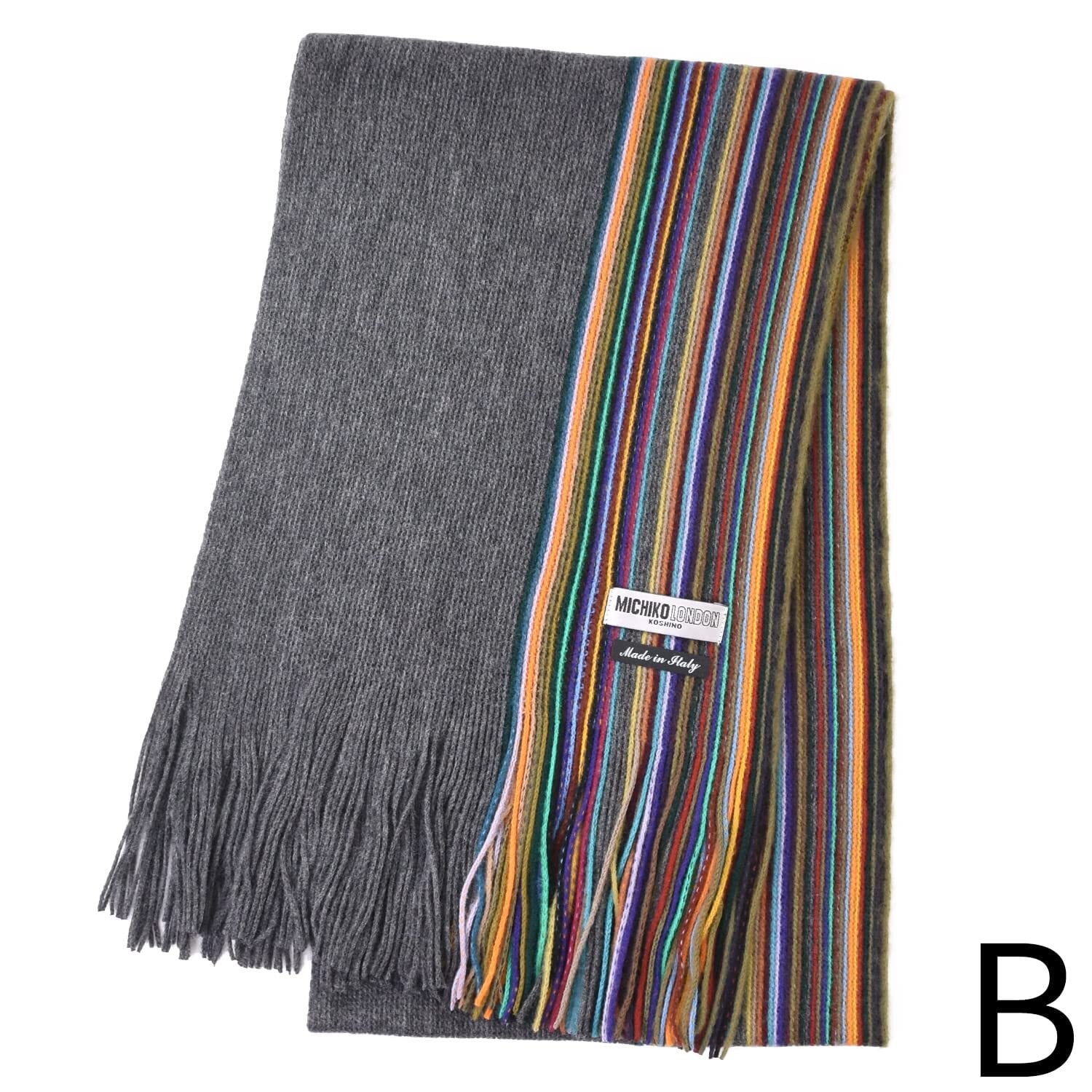 ミチコロンドン ブランドマフラー イタリア製 メンズ 男女兼用 ラッセル編 マルチストライプ 防寒 プレゼント