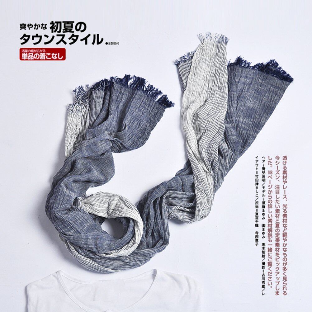 【人気商品】メンズ マフラー 大判ストール 男女兼用 コットン 綿 麻 ストライプ ガーゼ シワ感 洗い晒し 紫外線対策 春/夏/秋 柔らかい 薄手 マフラー 冷房対策 レデイース ストール