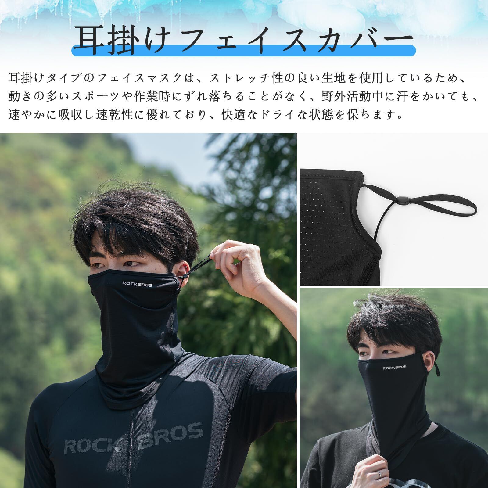 【在庫処分】ROCKBROS フェイスカバー uvカット 夏用 冷感 ネックカバー ネックウォーマー 日焼け防止 UPF50+ 息苦しくない 吸汗速乾 防風 防塵 軽量 スポーツ バイク ランニング ゴルフ 釣り 紫外線対策