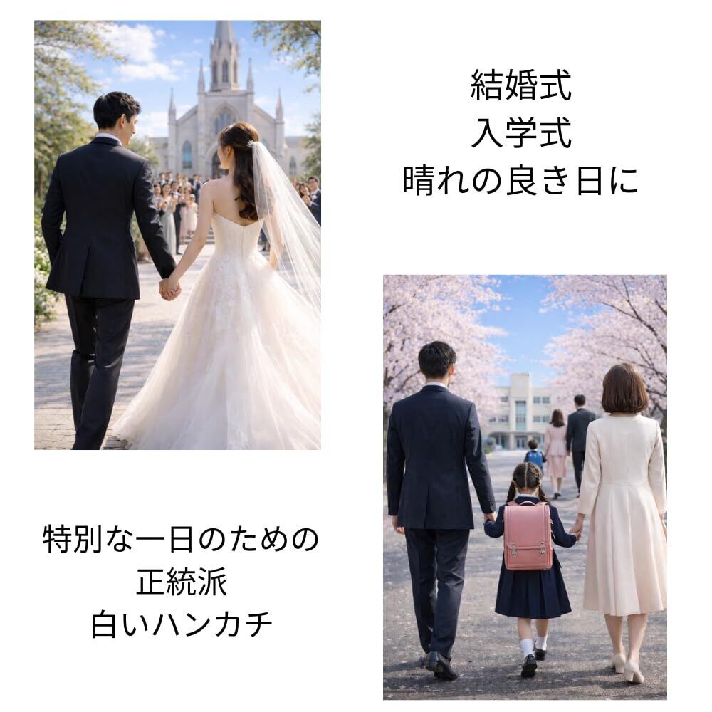 リネンハンカチ 32cm 5枚組 無地 ホワイト サイズ:32cm×32cm 5枚組袋入(1枚ずつ袋入れではありません) 素材:フレンチリネン100% 60s(60番手)三巻縫製仕上 縫製糸:綿100%三巻縫製 日本製 無蛍光 柔軟加工無 ワッシャー加工無し 染色可 1枚あたり重量約11g 上質なフレンチリネンを使用した、シンプルで使い勝手の良いハンカチです。 日本製にこだわり、すべて国内工場で丁寧に製造されております。 上品な透け感があるのが特徴で、吸水性に優れサラッとした肌ざわりなので、 年間を通して快適にご使用いただけます。 32cmのハンカチはズボンのポケットでもかさばらないので、男性にも人気のハンカチです。 カジュアルなシーンからフォーマルな場面まで幅広くご利用いただけます。 刺繍、染色、レース付など手芸素材としてもお楽しみいただけます。 レースとの相性もとても良く、ブライダルハンカチの作成にも適しています。 麻生地の特性上、生地表面に織りむらや繊維の小さなツブ(ネップ)、異原糸があります。 【お取り扱いのご注意】 ・お洗濯の際は、他の色物と一緒に洗わないようご注意ください。移染の可能性があります。 ・タンブラー乾燥はお避け下さい。 ・洗濯後は軽く絞り、畳んでパンパンとたたいて皺を伸ばした後、陰干しをしてください。 ・鋭利な物や引っ掛かりのある物はハンカチを傷つける可能性があります。ご注意の上、使用してください。 ・入荷毎に同色でも色合いに微妙な違いがみられます。 ・洗濯後は全体的に5%前後の縮みや、生地の歪みがみられます。 ・お使いのモニターによって、色味に多少の誤差が生じることがありますので予めご了承くださいませ。