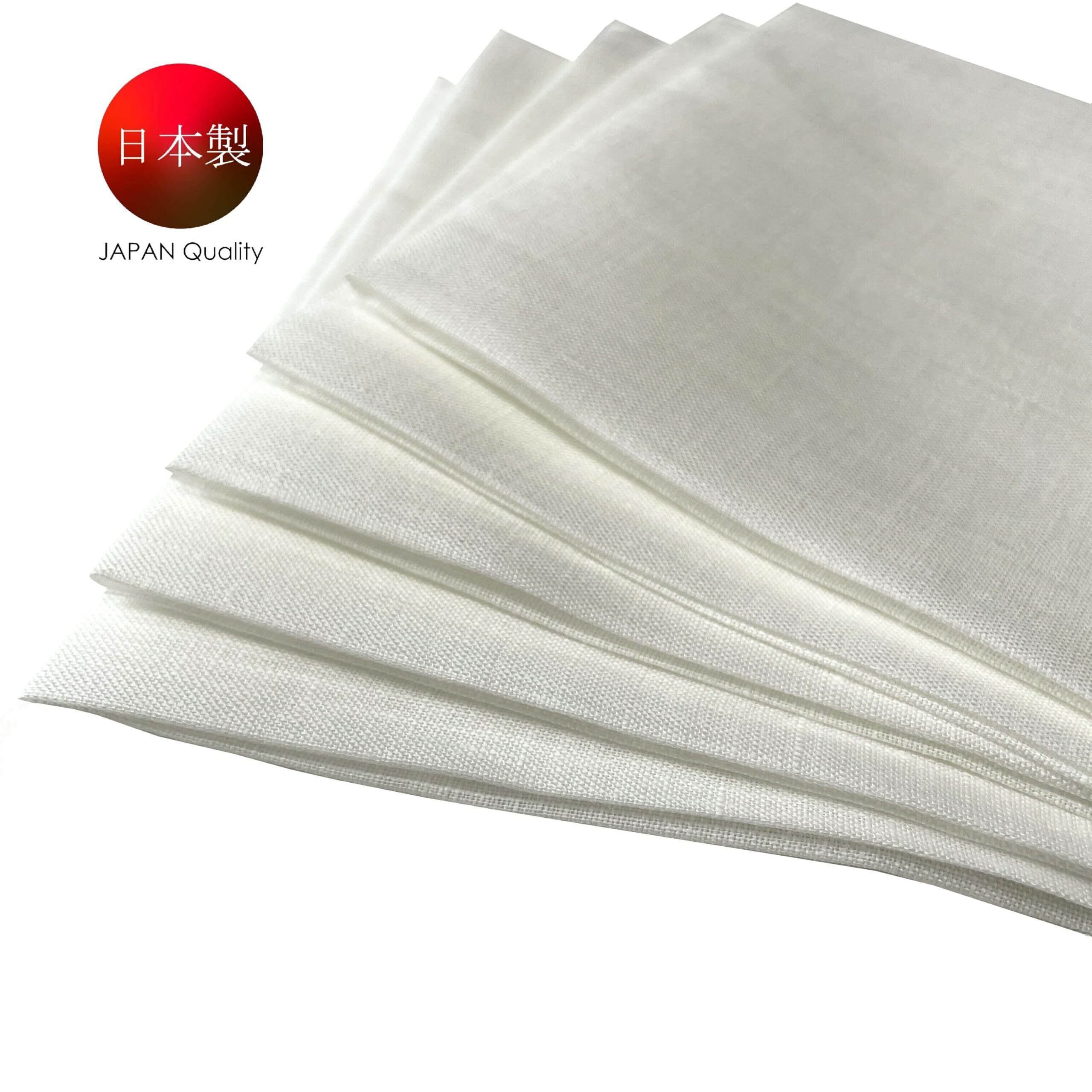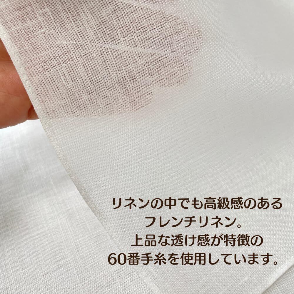 5枚1袋入れ(1枚ずつの袋入れではありません) リネンの中でも最上級とされるフレンチリネンを使用し、上品な透け感があるのが特徴です。 カジュアルなシーンからフォーマルな場面まで幅広くご利用いただけます。 無蛍光 柔軟加工無しなので、染色にもお使いいただけます。