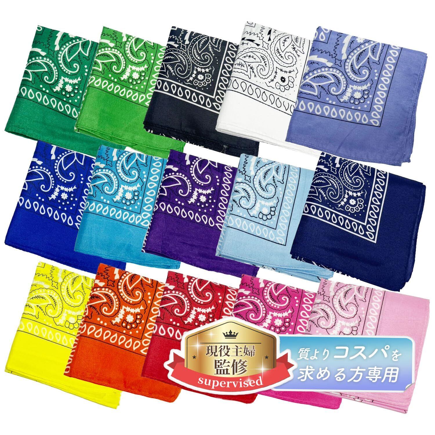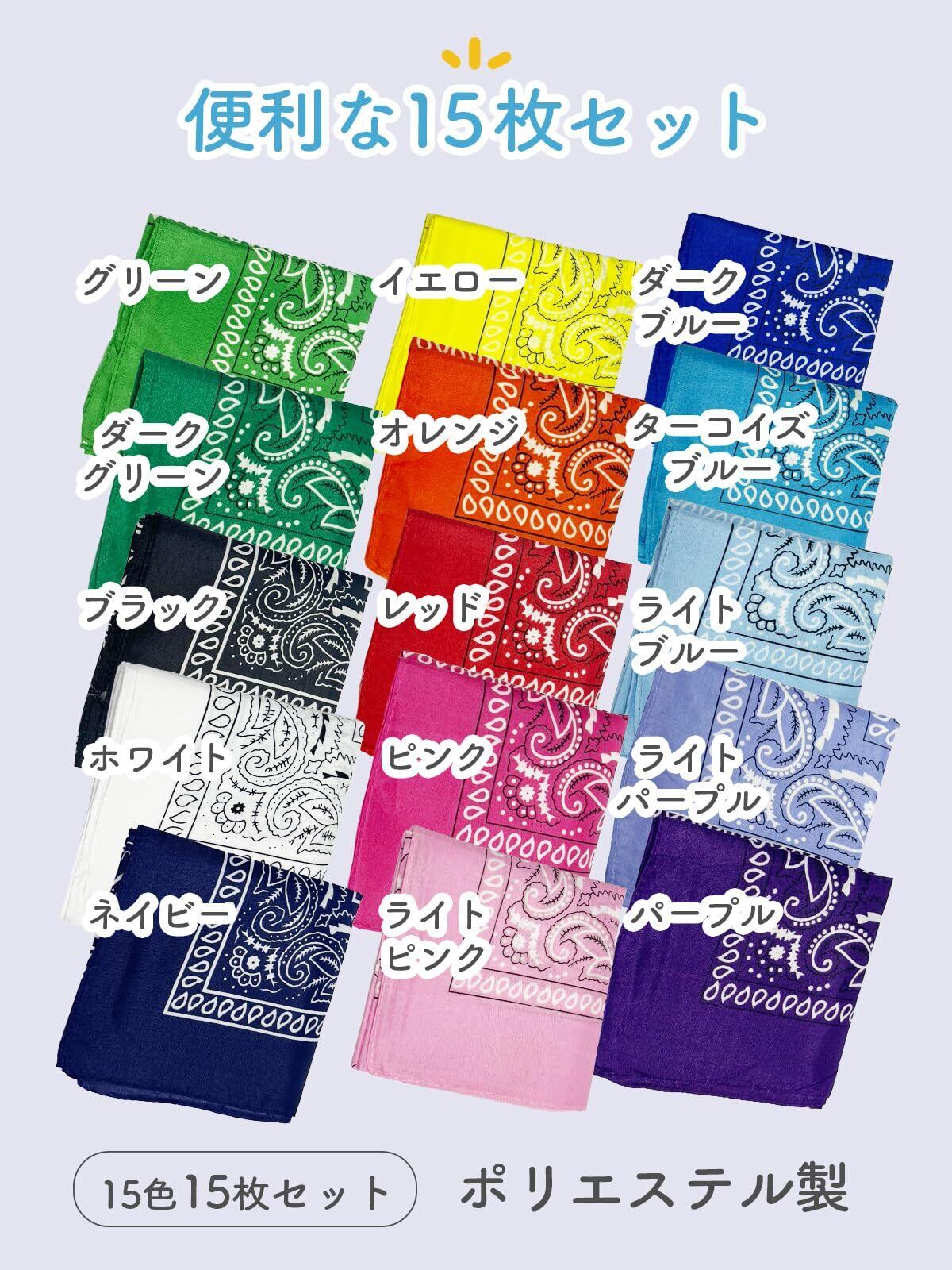 バンダナ 15枚セット 大判サイズ(55×55cm)ペイズリー柄『値段が安い重視の方が買う用』S-417
