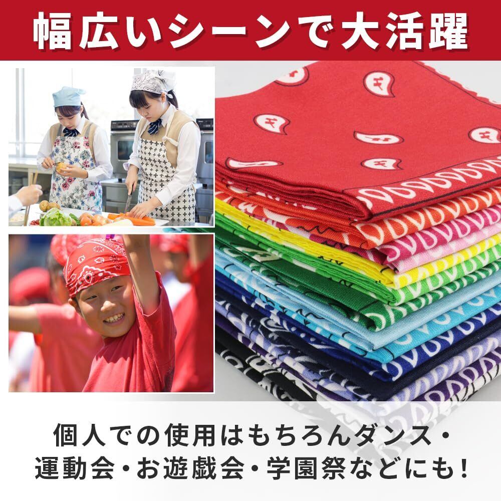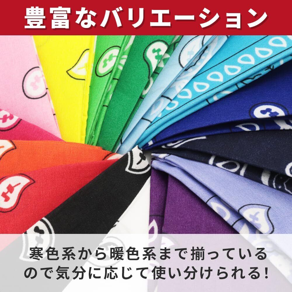 【数量限定】ペイズリー柄バンダナ 15色セット 多用途 包装 お弁当 スカーフ 髪留め アクセント 大判 54cm×54cm