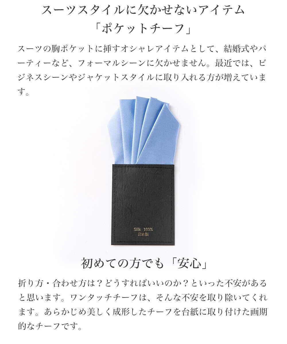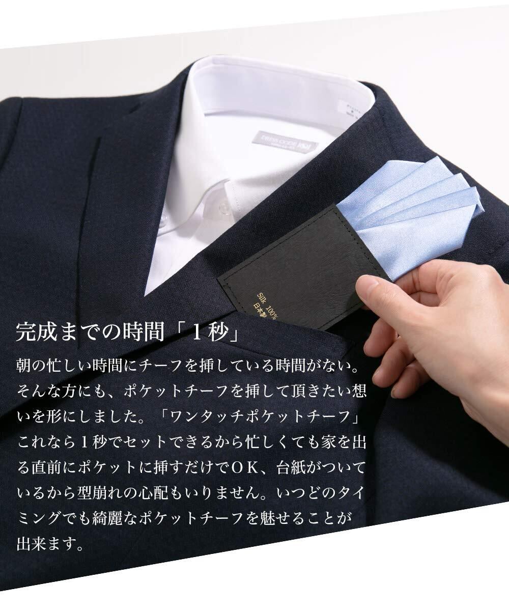 ポケットチーフ 挿すさだけ ワンタッチ 日本製 シルク100% 絹 型崩れしない 結婚式 パーティー フォーマル スーツ ファイブピークス 台紙 一体型