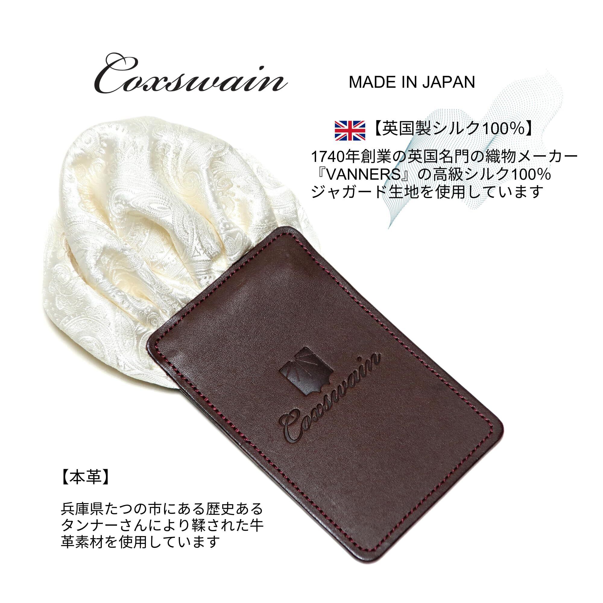 【シルク生地】1740年創業の英国名門シルク織物メーカー『VANNERS』のシルク生地を使用しています。老舗ならではの高密度で上質なシルク生地は、ハリとコシ、加えて耐久性に富んでいます。この『VANNERS』の生地を日本国内で縫製・加工し、最高品質のプレミアムポケットチーフに仕上げました。上質なシルクは特有の光沢感と程よい厚みがあり、胸元に男らしい色気のあるお洒落を演出します。【革素材】日本国内でトップクラスの革の産地、兵庫県たつの市にある歴史あるタンナーさんにより鞣された牛革素材を使用しています。革の鞣し方法はベジタブルタンニン鞣しとクロム鞣しの2種類を掛け合わせた混合鞣し(コンビ鞣し)です。経年変化(エイジング)も楽しめる革です。本革製品は一つ一つ風合いが異なります。本革の特徴でもある、シワ、シボ、血筋や生前に負った擦り傷など使用する部位によって特徴が違います。本革の証であり、他に一つとない商品の魅力としてお楽しみください。