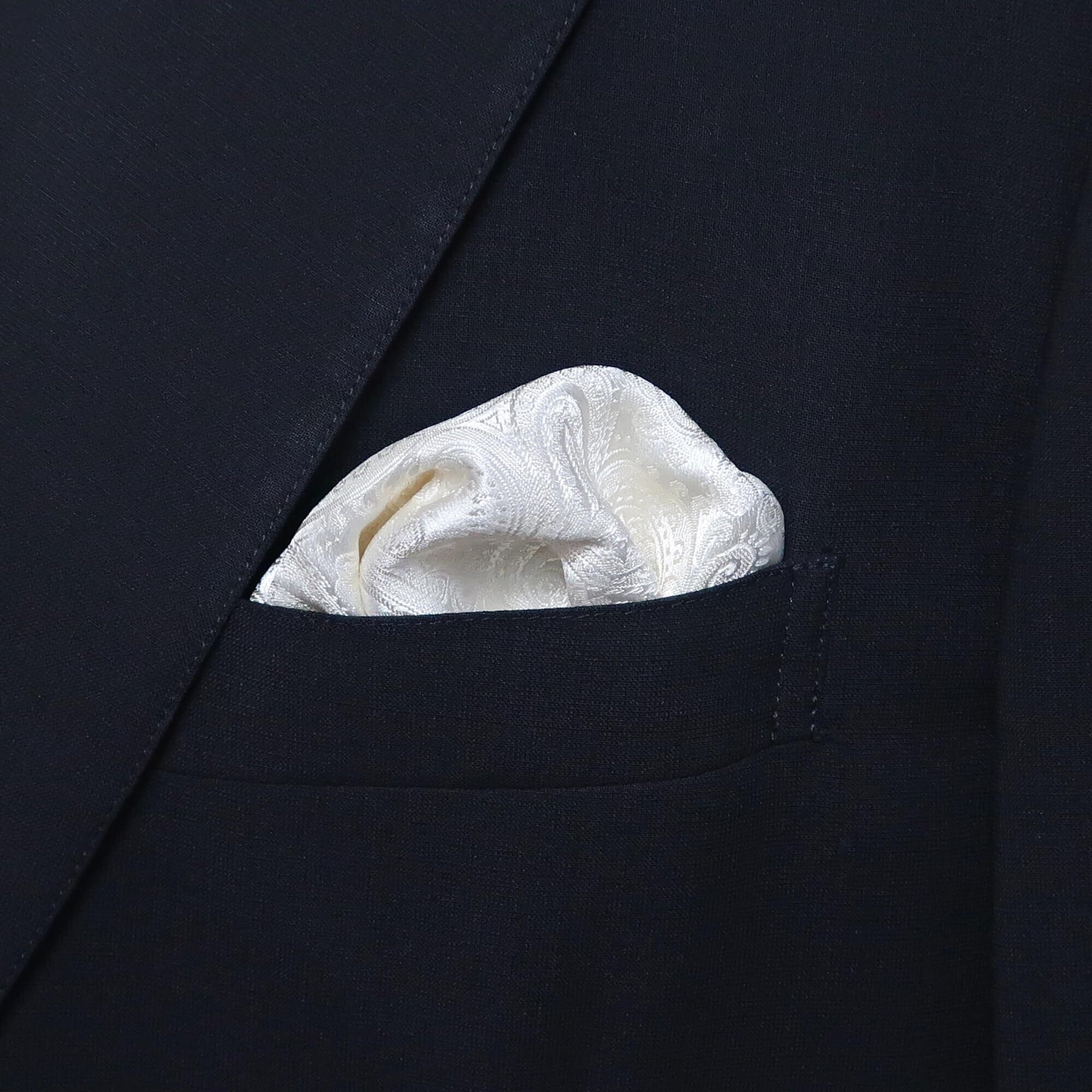 ポケットチーフ フォーマル ペイズリー柄 アイボリー 英国製シルク ジャガード織り 日本製 胸ポケットに挿すだけ CW-PC038