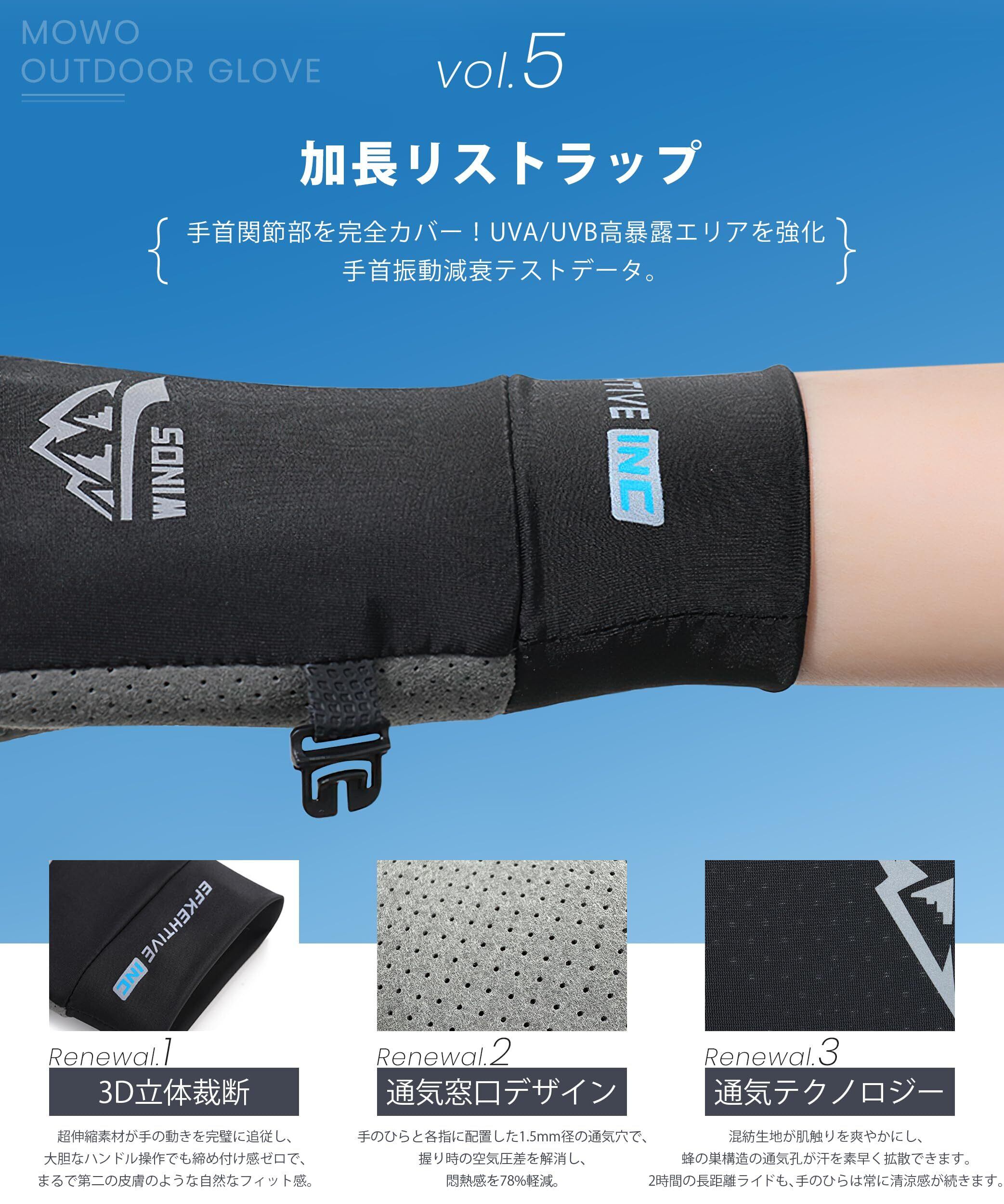 【3D人間工学・衝撃吸収×加厚パッド】手掌・指先までをカバーする箇所の3Dスキャンデータに基づくメンズ手袋の立体裁縫です。夏用手袋の加厚ゴムパッドは衝撃吸収性と滑り止めに優れ、でこぼこ道でも安定したハンドル操作を可能にし、事故の可能性を減らします。特に夏用手袋の指関節のアーチサポートは、長時間のダイナミックグリップでも筋肉疲労を抑えます。この日焼け 手袋を通じた最適なフィット感が、操作性と安全性を両立させることが特徴です。