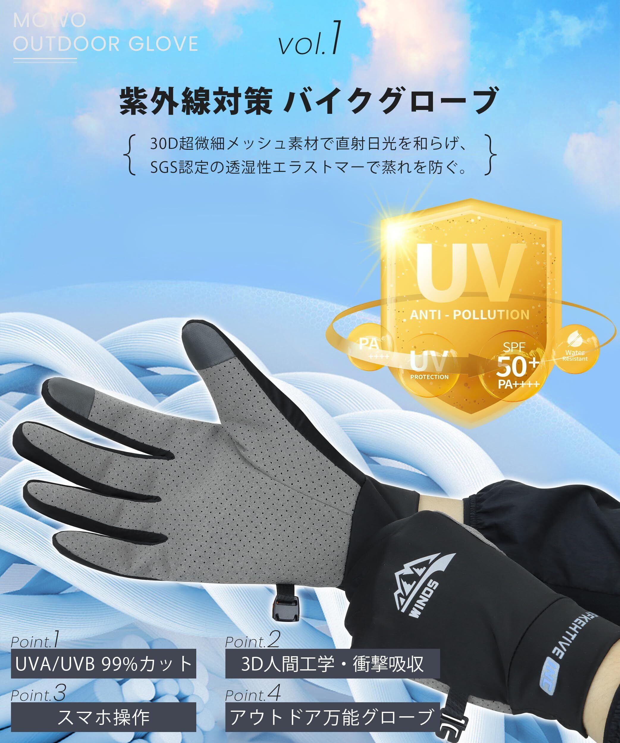 【UVカット50+・風を通すような清涼感】メンズ夏用手袋は、UVA/UVBを99%遮断するSPF50+/PA++++の厳格な防紫外线処理を施しています。30D超細目の特殊メッシュ素材が、ゴールドウィンドウ時の直射光を柔らかく散らしつつ、体感温度を3℃下げる効果を実証します(SGS認定済み)。縫製部分には透湿性エラストマーを追加し、長時間のレースでも日焼け 手袋の裏側が蒸れ込む心配がありません。