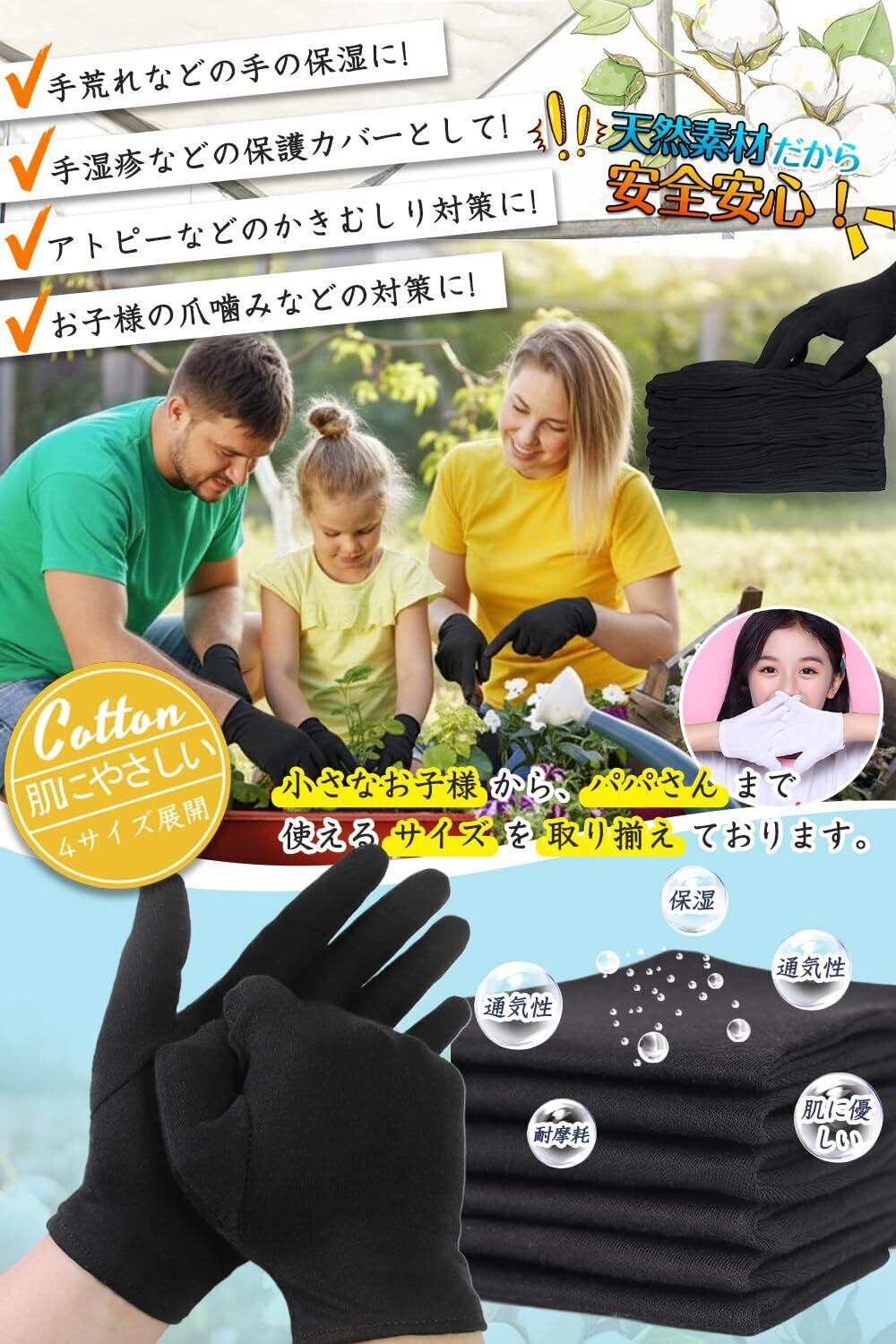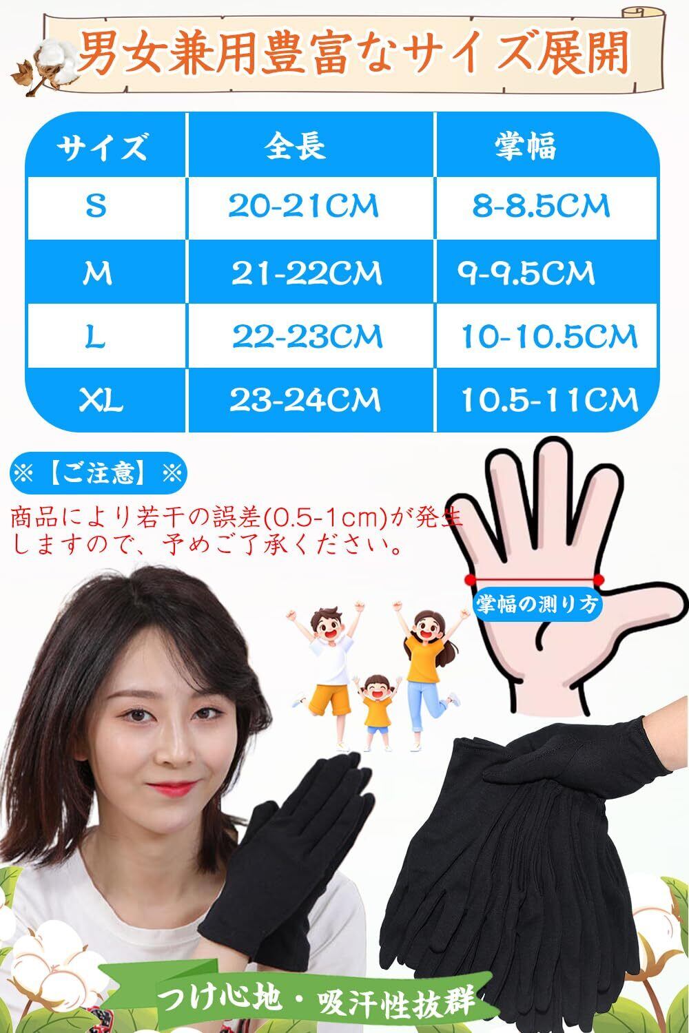 【新着商品】綿手袋 黒 手荒れ コットン 布手袋 薄手 スムス 作業用 インナー 使い捨て おやすみ ナイト ハンドケア 保湿 業務用 検品 家事 貴重品 メンズ 子供 レディース 左右兼用