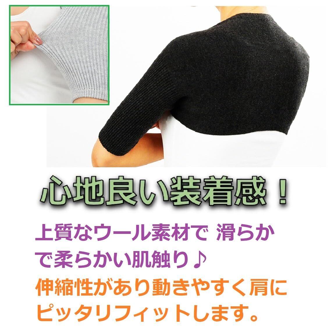 上質なウール素材で 滑らかで柔らかい肌触りです。伸縮性があり動きやすく肩にピッタリフィットします。両肩部内側には厚手の毛があり更に暖かい!(もし素材が肌に合わない場合は肌着の上から着用してください)