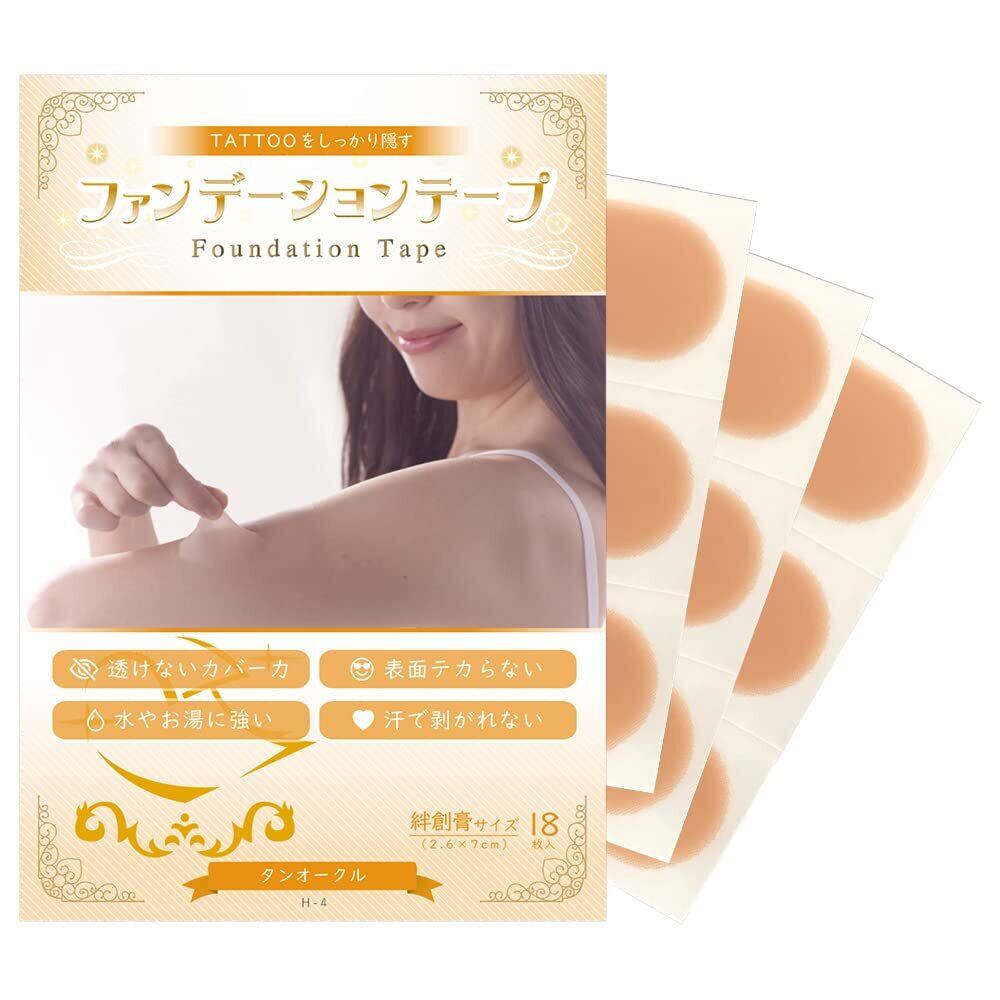 【新着商品】ファンデーションテープ (タトゥー隠しシール 刺青を隠す) 絆創膏サイズ 同色 6シート 18枚入 取得 tattoo cover (タンオークル)