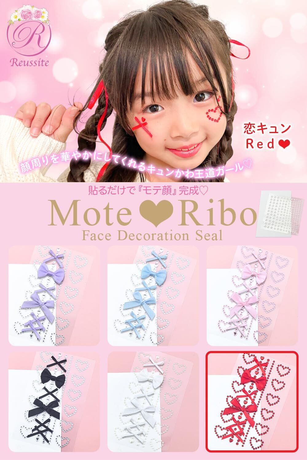 顔 シール キラキラシール ラインストーン デコシール パール 髪 リボン/モテリボ (レッド)
